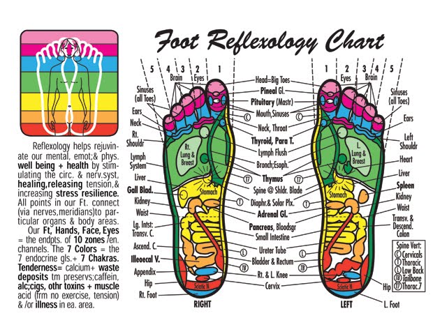 الرحم : تقع النقطة المرتبطة بالرحم في الجانب الداخلي من القدم بين طرف عظمة الكاحل وظهر الكعب،ويؤدي الضغط على تلك النقطة الى اعادة التوازن للرحم وكفاءة ادائه لوظائفه.