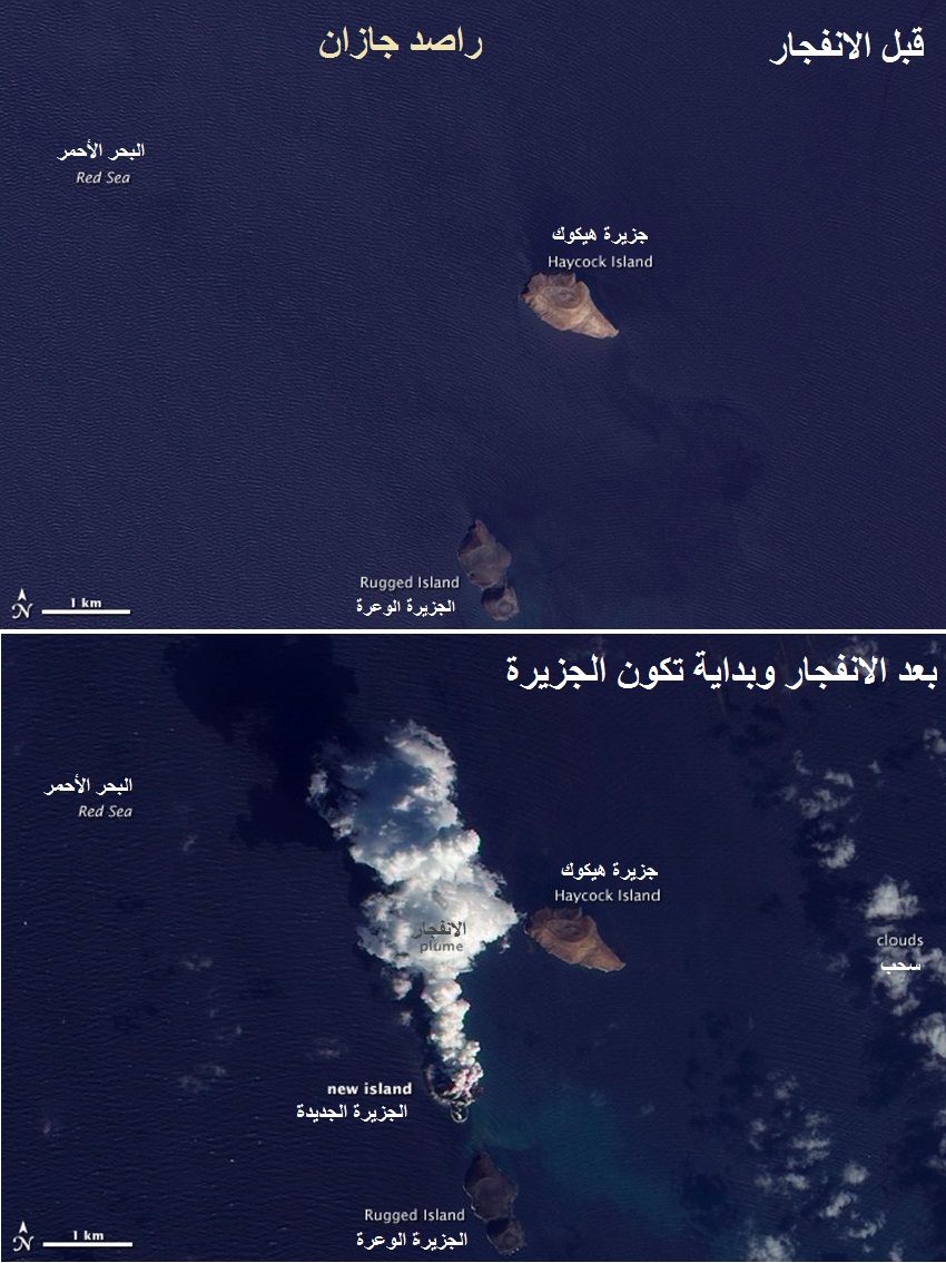 وعن راصد جازان : بدران - rain gauge - تقول انه أعقب النشاط البركاني الذي حدث الاسبوع الماضي شمال غرب مدينة الحديدة اليمنية ظهور مفاجئ لجزيرة جديدة حيث كانت وكالة ناسا الدولية قد رصدت ميلاد جزيرة جديدة في البحر الأحمر بعد أن بثت صوراً للمنطقة ويظهر فيها الإنفجار على شكل دخان متصاعد وبعد أن هدأت ثورة البركان بثت صورة أخرى للموقع ولكن المفاجأة كانت في ظهور جزيرة