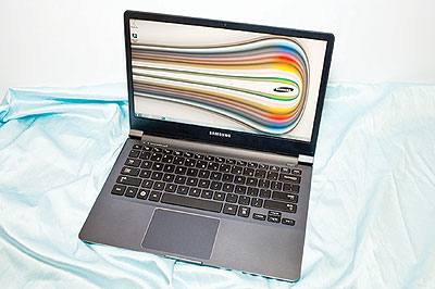 خدمة «المجموعة 9» من «سامسونغ» Samsung Series 9. ما الذي يجعل «المجموعة 9» من «سامسونغ» مهمة؟ إن ذلك الجهاز قياس 13 بوصة الرشيق والخفيف الوزن بحدود 2.5 رطل، وبسماكة نصف بوصة في أعرض نقطة منه، مع حواف مدققة. وهو من النحافة أشبه برغيف الخبز، مع ظهر ناشف أسود مصقول غير لماع.