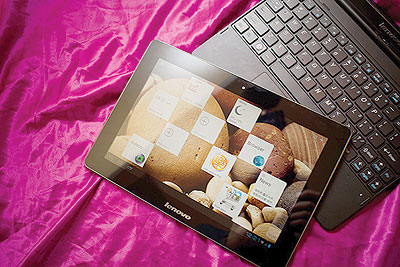خدمة «لينوفو أيديا تاب إس 2» IdeaTab S2. هنالك الكثير الذي نعجب به في أحدث جهاز «لينوفو» العامل بنظام «أندرويد». فهو يشغل «أندرويد 4.0»، «آيس كريم ساندويتش». ويقبع هذا الجهاز قياس 10 بوصات على قاعدة لوحة مفاتيح، هي أشبه بجهاز «لابتوب»، بل أكثر شبها بأجهزة «ترانسفورمر» اللوحية من إنتاج «أسوس». وقد زودت القاعدة ببطاريات داخلها من شأنها تزويد الجهاز اللوحي بمزيد من فترة التشغيل التي تصل إلى ثلاث أو أربع ساعات من ممارسات الألعاب. وهو نحيف بسماكة 0.33 بوصة وبوزن خفيف لا يتعدى 20 أونصة (الأونصة 29 غم تقريبا)، مع سعة تخزين تصل إلى 64 غيغابايت. لكن المعالج «كوالكوم سنابدراغون إس 4» هو ثنائي النواة بسرعة 1.7 غيغاهيرتز، وليس رباعيا. وسيجري تسويقه في الربع الثاني من العام الحالي، ربما بسعر 350 دولارا، مع توقع أن يصل سعر القاعدة الإضافي إلى 150 دولارا.