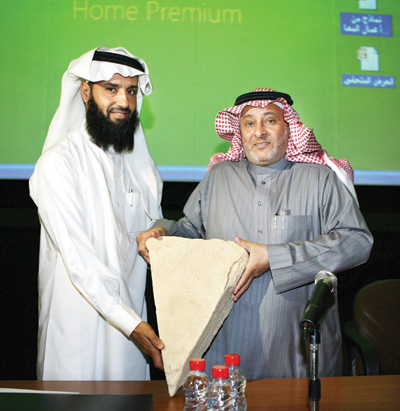 الغبان يتسلم القطعة الأثرية من الغفيلي.