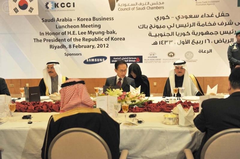 وقال إن الشركات الكورية حظيت بعقود ومشاريع في المملكة في 2011، بلغت قيمتها 15 مليار دولار، مبينا أن السعودية تتطلع لتحقيق حضور أكبر للشركات الكورية في المملكة وتعاون أشمل مع نظيراتها في المملكة، وأن المملكة مقبلة على طفرة في المشاريع خاصة أن الميزانية تحمل في طياتها كل عام المزيد والمزيد من المشاريع.