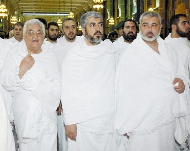 محمود عباس وخالد مشعل واسماعيل هنية أثناء أدائهم مناسك العمرة وتوقيع اتفاقية مكة