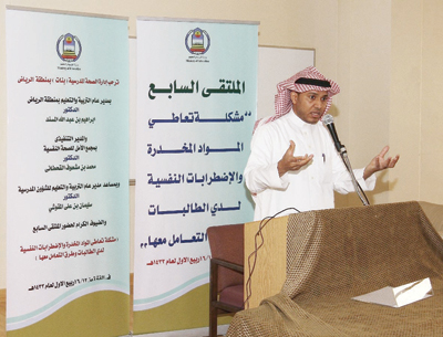 وتناول الملتقى الذي نظمه مجمع الأمل للصحة النفسية بالتعاون مع إدارة التربية والتعليم في الرياض، واستمر عدة أيام في مدارس المملكة في الرياض، مشكلة تعاطي المواد المخدرة والاضطرابات النفسية لدى الطالبات وطرق التعامل معها. وأشار عبد الله العبيلي مدير التوعية والتثقيف الصحي في مجمع الأمل في الرياض، إلى أن الملتقى شهد أكثر من عشر محاضرات وبرامج عمل ومناقشات واسعة ومعارض توعوية ومشاركة من قبل الإخصائيات في اللجنة الوطنية لمكافحة المخدرات والمديرية العامة لمكافحة المخدرات وعدد من الجهات وشاركت فيه أكثر من 600 موظفة من إدارة تعليم الرياض ما بين مرشدة طلابية ومشرفة تربوية بهدف تطوير مهاراتهن بكيفية التعامل لمواجهة إدمان المخدرات والاضطرابات النفسية لدى الطالبات. هذا وقد شهد المعرض التوعوي المصاحب للملتقى توزيع عدد من المطبوعات التوعوية وإقبالا كبيرا ولقي استحسان الحاضرات، خاصة معرض اللجنة الوطنية لمكافحة المخدرات.
