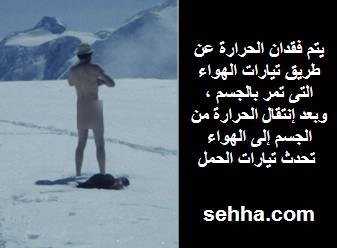 بصفة عامة أتناء البرد, والجفاف, تنقص الحرارة على مدى ساعات, وفي الماء البارد فإن حرارة الجسم من الممكن أن تهبط لمستوى منخفض خلال دقائق.