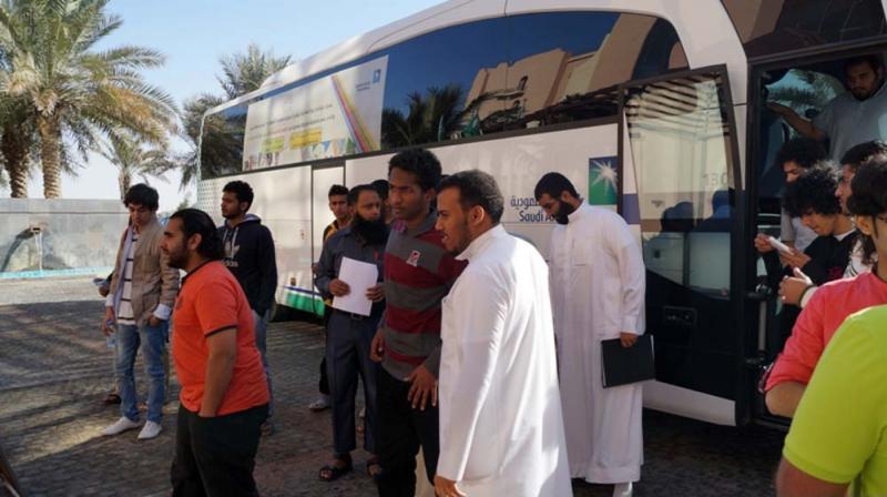 ينبع - واس : زار وفد من طلاب كليات الهيئة الملكية بينبع أمس منتدى الصناعات البيئية الخضراء 2013م , الذي تنظمه شركة أرامكو السعودية في فندق الموفنمبيك بمدينة ينبع الصناعية.
