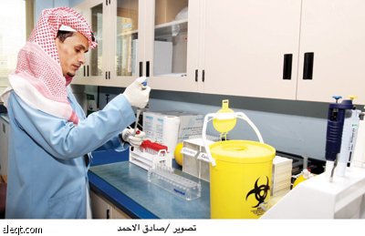 شاب سعودي يتفحص إحدى العينات داخل المركز.