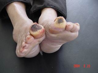 غسل القدمين بعناية ولطف بالماء الدافئ والصابون كل يوم، والتأكد من أن المياه ليست ساخنة جدا، ومن ثم يجب تجفيف القدمين بعناية.