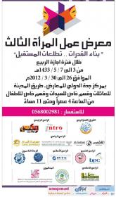 من جانبها أشارت الاستاذة الجوهرة العنقري الى ان معرض عمل المرأة يعتبر ردا عمليا على من يشكك في كفاءة المرأة وقصور المجالات المتاحة لها فهاهي اليوم تعمل من بيتها وتنتج بيدها في أسر منتجة وهي تعمل من بيتها في التجارة والتسويق وهي اليوم سيدة اعمال مسجلة رسمياً في الغرف التجارية تمارس التجارة بل وتساهم في مجالات التدريب والمرأه نصف المجتمع، ومجتمع يفعل نصفه ويمكنه من اداء دوره كاملا لاشك مجتمع واعٍ مسئول ومتكاتف.