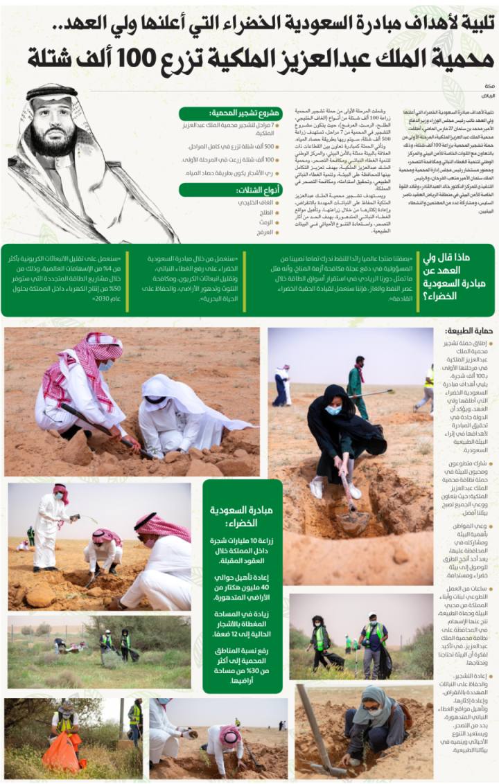 وتحتضن محمية الملك عبد العزيز الملكية، غطاء نباتياً كبيراً، مثل: