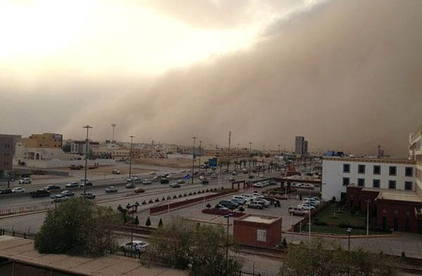 الكتلة الغبارية لحظة وصولها لأحياء شمال الرياض