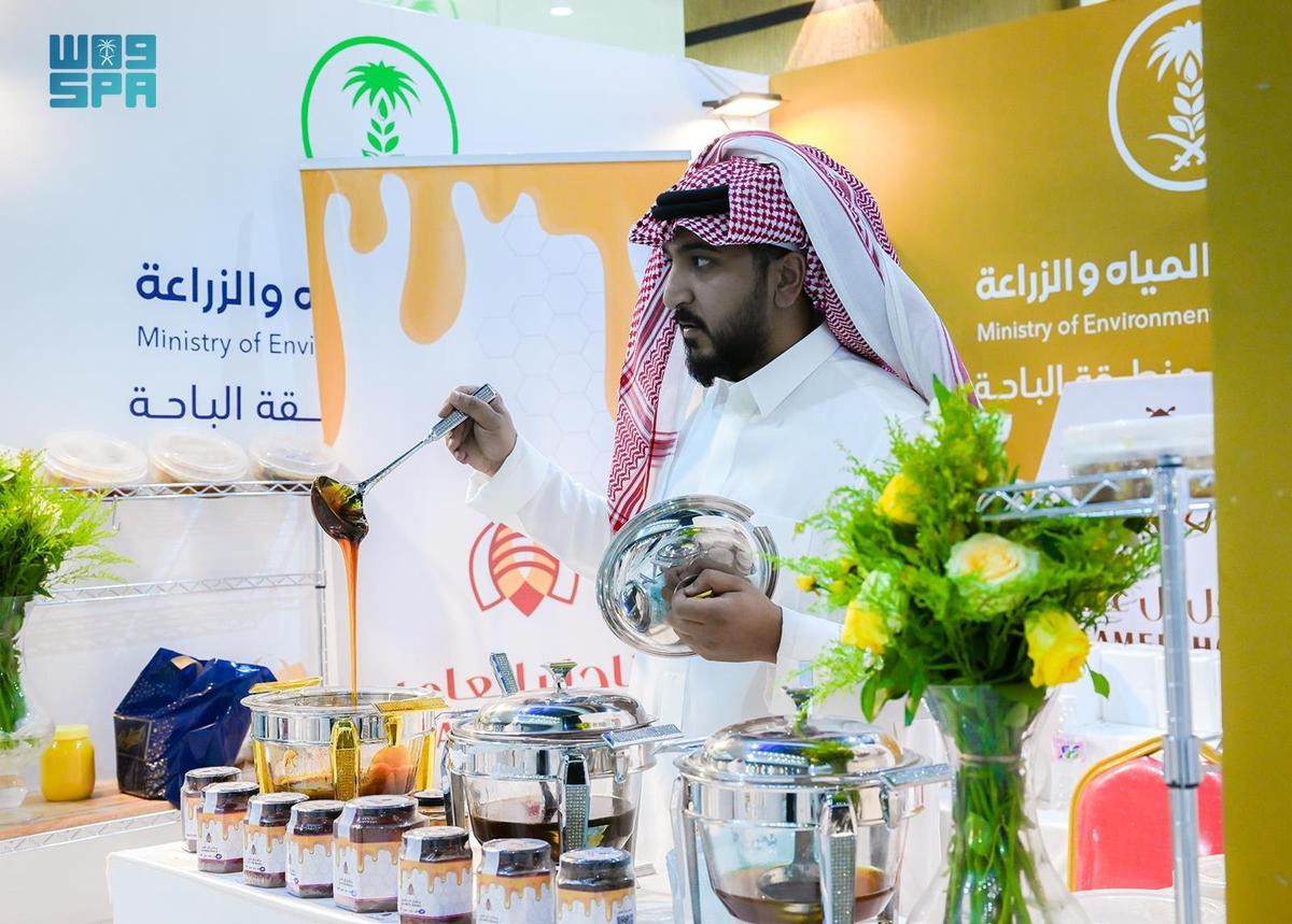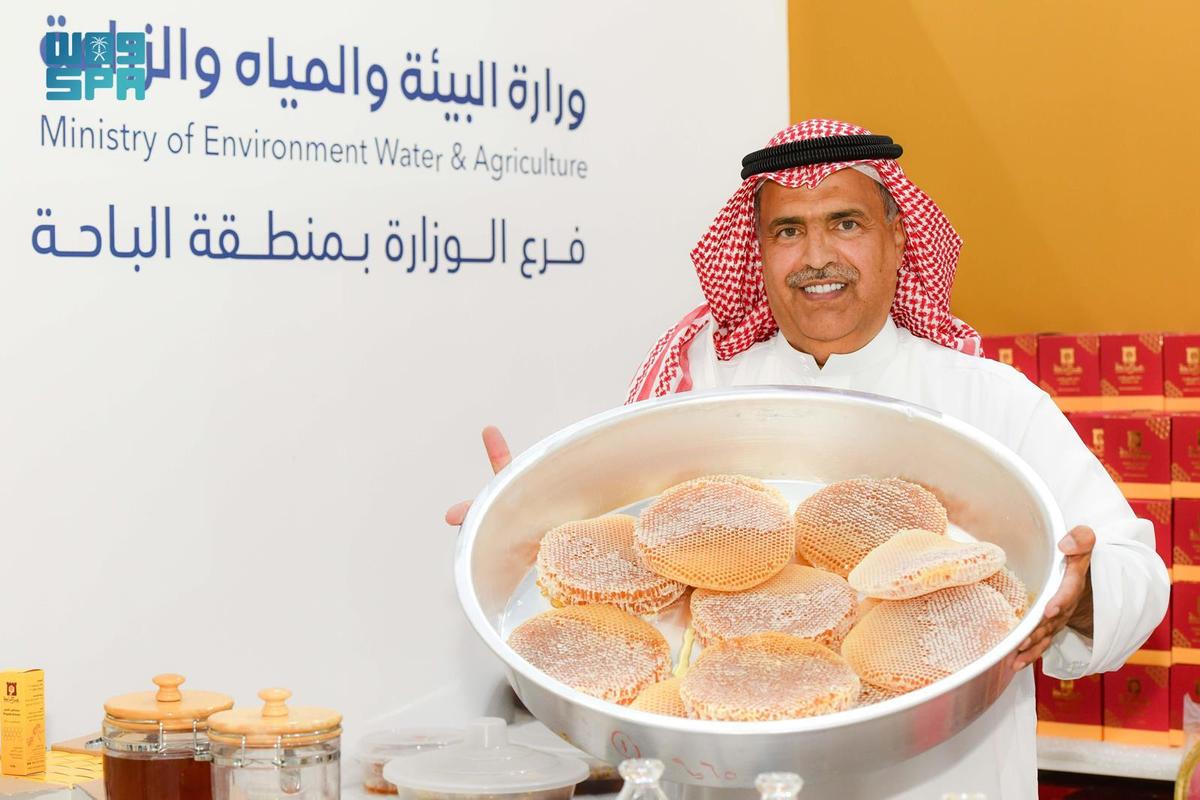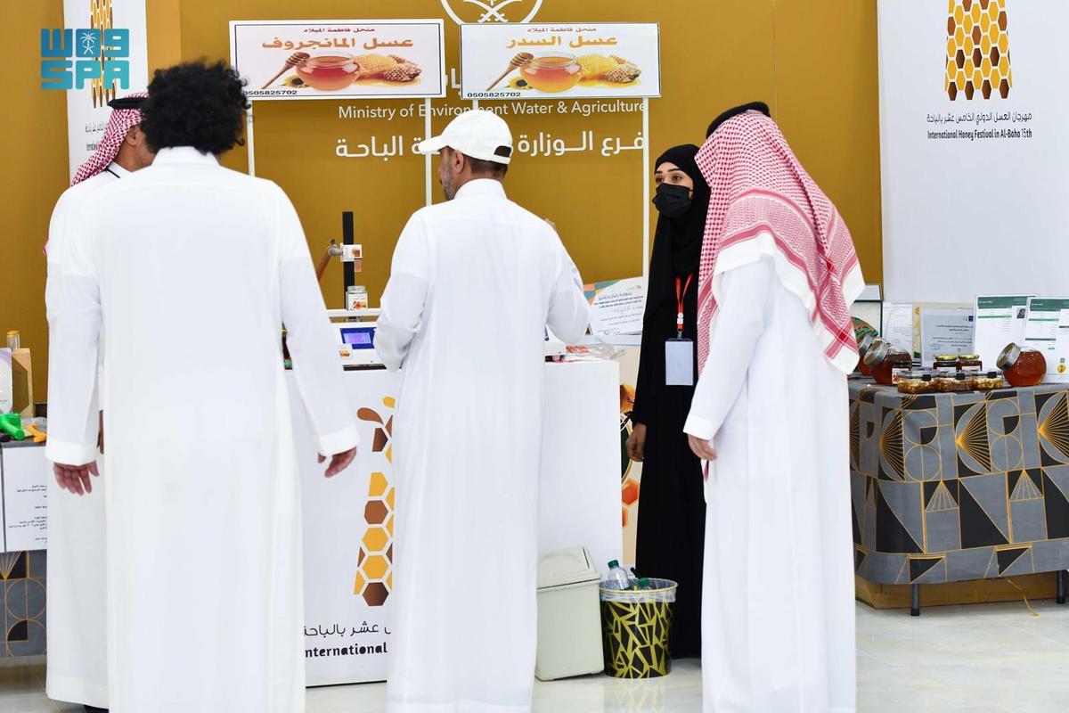 من جانب آخر أوضح رئيس مجلس إدارة جمعية النحالين التعاونية بمنطقة الباحة الأستاذ د. أحمد الخازم الغامدي أن مهرجان العسل الدولي في نسخته الـ15 المقام حاليًا بمقر الجمعية في محافظة بلجرشي يأتي بمشاركة 120 عارضًا يعرضون منتجاتهم من أجود أنواع العسل الذي يتم الكشف عنه بواسطة طريق المختبرات الحديثة وأجهزة الكشف المتطورة عن جودة العسل، مبينًا أن المهرجان يضم كذلك عددًا من منتجات النحل مثل سم النحل، ومادة العقبر أو البروبليس وهي مادة معقمة يصنعها النحل من الأشجار وهي طبيعية وغالية الثمن، وحبوب اللقاح، وشمع النحل وله عدة فوائد صحية.