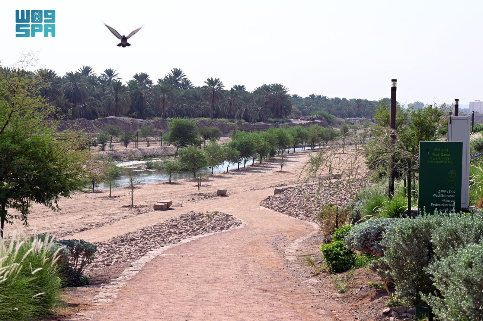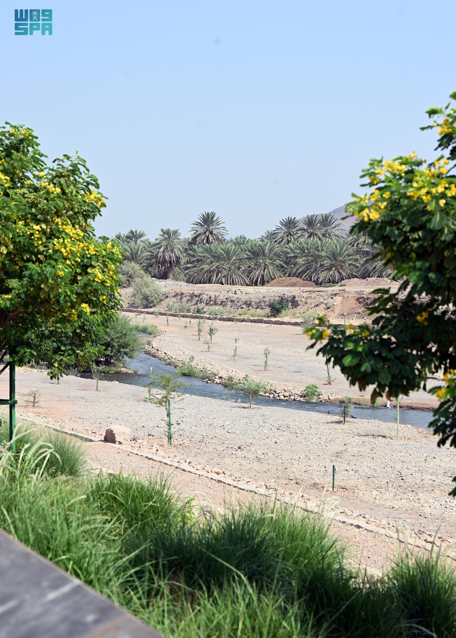 وشملت الأعمال زراعة أشجار النخيل والمسطحات الخضراء وتزيين الموقع بالأنوار الأرضية، مع الحرص على تجانس المواد المستخدمة مع طبيعة المكان، بما في ذلك الكراسي الدائمة وحاويات النفايات والأحواض الزراعية المصممة من الأحجار، ليصبح وادي قناة وجهة بيئية وتاريخية تعزز المشهد الحضري للمدينة المنورة.