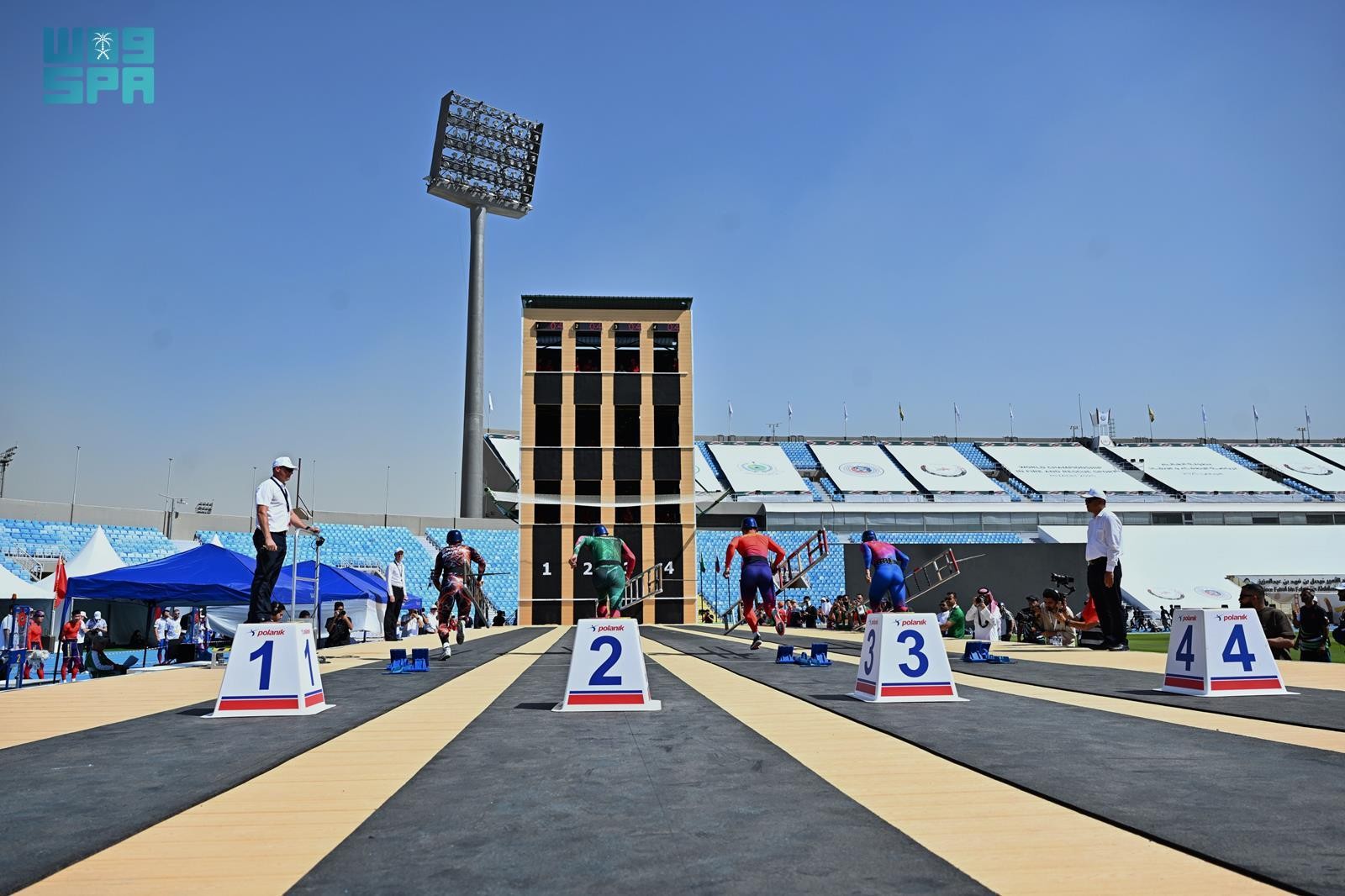 وشهدت منافسات اليوم الأول للبطولة خلال الفترة الصباحية إقامة الأدوار التمهيدية لسباق التسلق باستخدام سلم الخطاف إلى الطابق الرابع من برج التدريب للرجال، وأقيمت الأدوار التمهيدية في سباق تسلق البرج بالسلالم والصعود إلى الطابق الثاني من برج التدريب للسيدات، تلتها منافسات نصف النهائي، لسباق التسلق باستخدام سلم الخطاف إلى الطابق الرابع من برج التدريب للرجال.