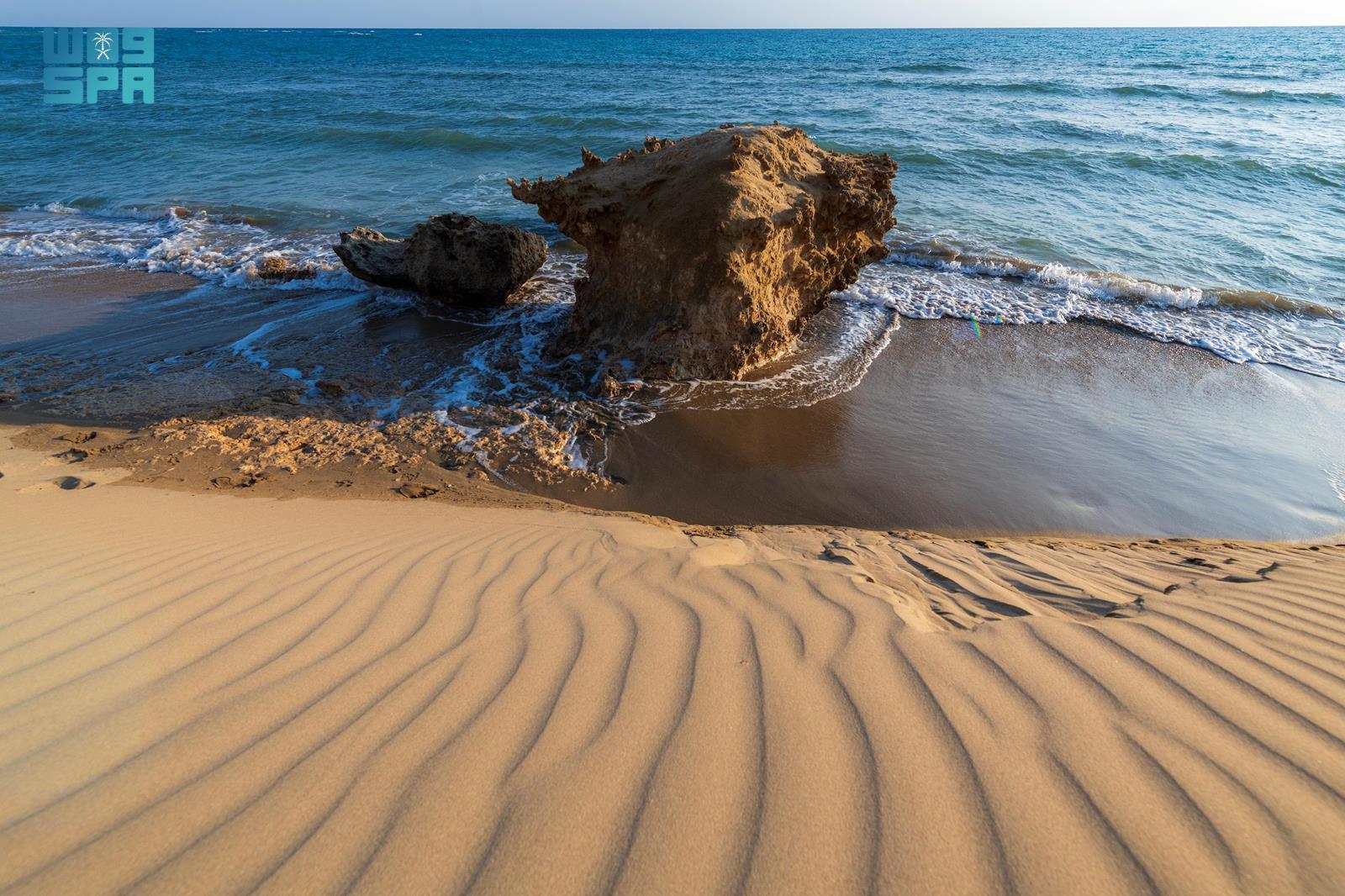 ويعود تميّز الشاطئ الواقع على نحو 15 كيلومترًا جنوب مدينة الوجه إلى مجموعة من العوامل، أبرزها تنوع تضاريسه التي تجمع بين التكوينات الصخرية النادرة، والشعاب المرجانية المتحجرة، والرمال الناعمة الممتدة بمحاذاة الساحل، في مشهدٍ يعكس ثراء البيئات البحرية على ساحل البحر الأحمر.
