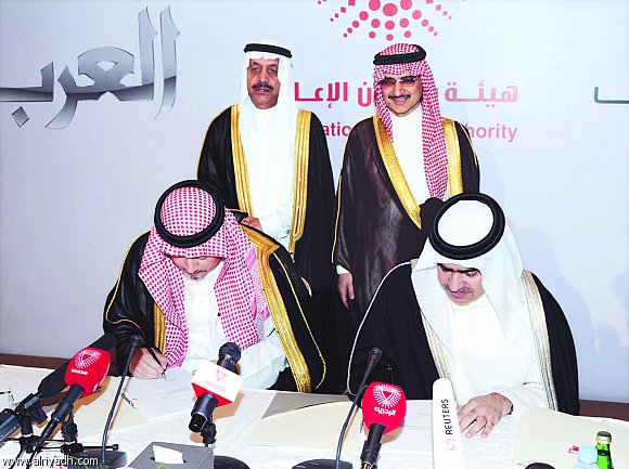 الشيخ فواز يوقع وثيقة التعاون مع مدير قناة العرب جمال خاشقجي