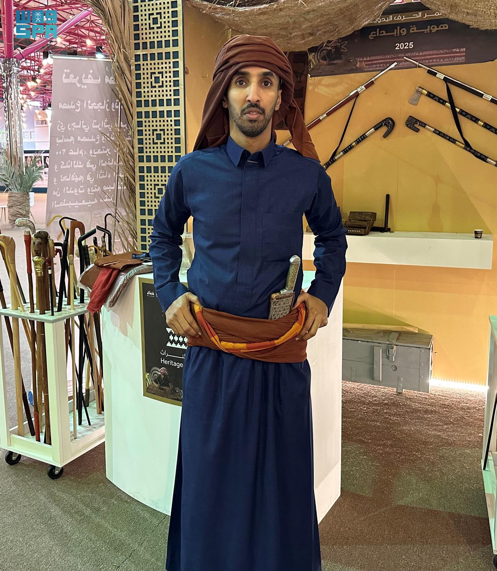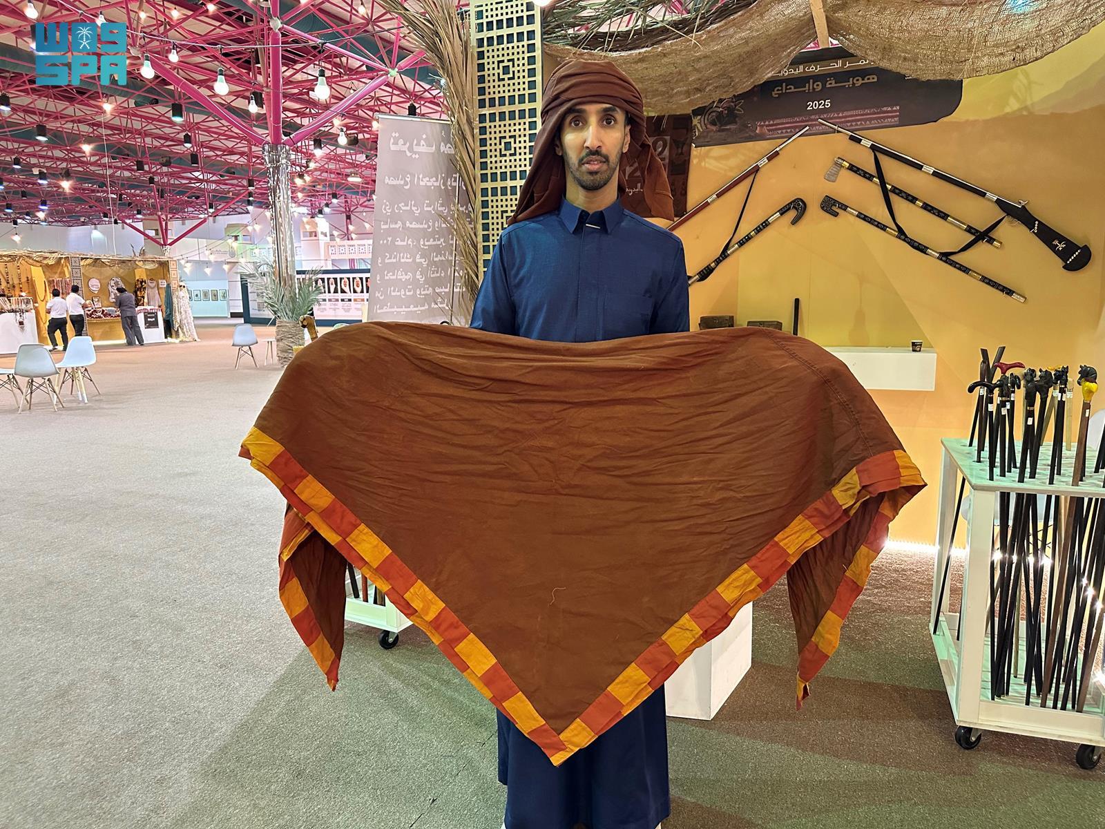 ويبرز "المصدّع الحجازي" كأبرز المشغولات اليدوية التي جذبت زوار المعرض، ويُعد أحد أبرز أنماط اللباس التراثي، ويمثل رمزًا ثقافيًا واجتماعيًا ارتبط بتاريخ أهالي مكة والطائف وما جاورهما، ويجمع بين الأصالة والبساطة والأناقة.