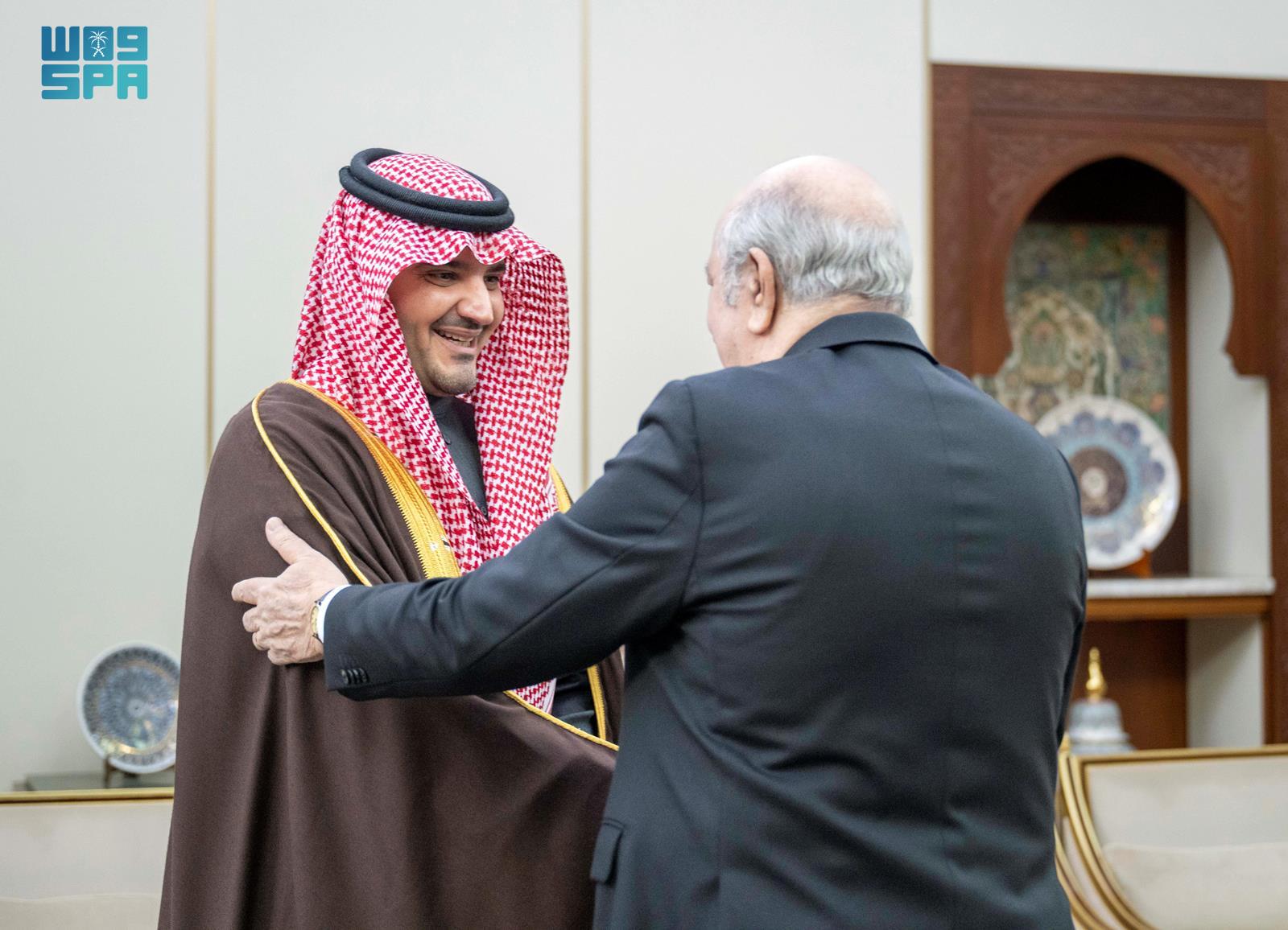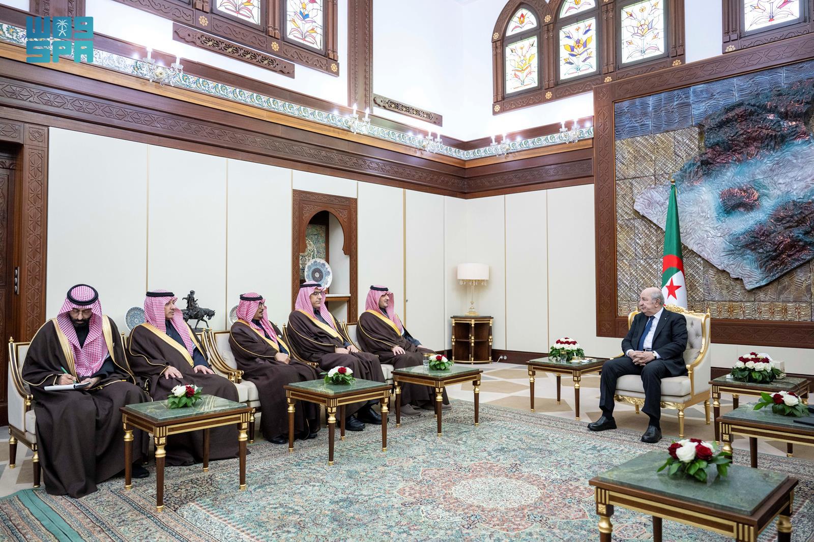 ونقل الأمير عبد العزيز بن سعود خلال اللقاء، تحيات خادم الحرمين الشريفين الملك سلمان بن عبد العزيز آل سعود، وصاحب السمو الملكي الأمير محمد بن سلمان بن عبد العزيز آل سعود ولي العهد رئيس مجلس الوزراء، لفخامته، وتمنياتهما -رعاهما الله- لجمهورية الجزائر حكومةً وشعبًا دوام التقدم والازدهار.