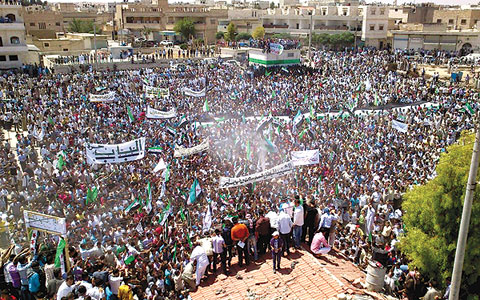 صورة من موقع أوغاريت لمظاهرات ساحة الحرية في مدينة الباب قرب حلب أمس