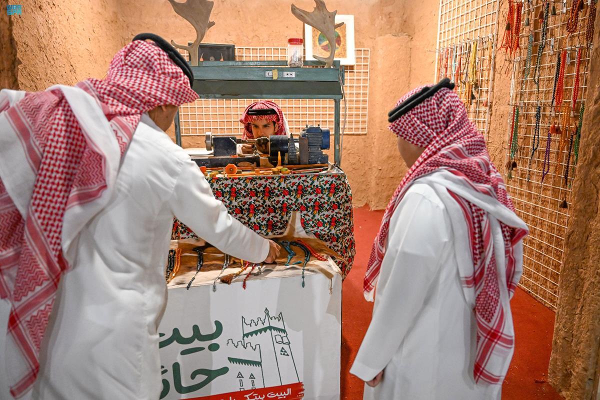 وشاهد زوار مهرجان بيت حائل صناعة السبح من خلال تقطيع الخام وتسبيب الأطراف والتخريم وتشكيل الخرز ثم الصنفرة والتلميع والشك بالخيط ومن ثم الكركوشة، لتتشكل بعد ذلك من حبات متراصّة جنبًا إلى جنب في أشكالها وألوانها لتكون في النهاية "سبحة" من الفن الأصيل للتراث اليدوي ذي النكهة والذوق الخاص لأغلب كبار السن والشباب حيث يستخدمونها في الهدايا والتسبيح والتسلية وللوجاهات الاجتماعية وغيرها من الاستخدامات.