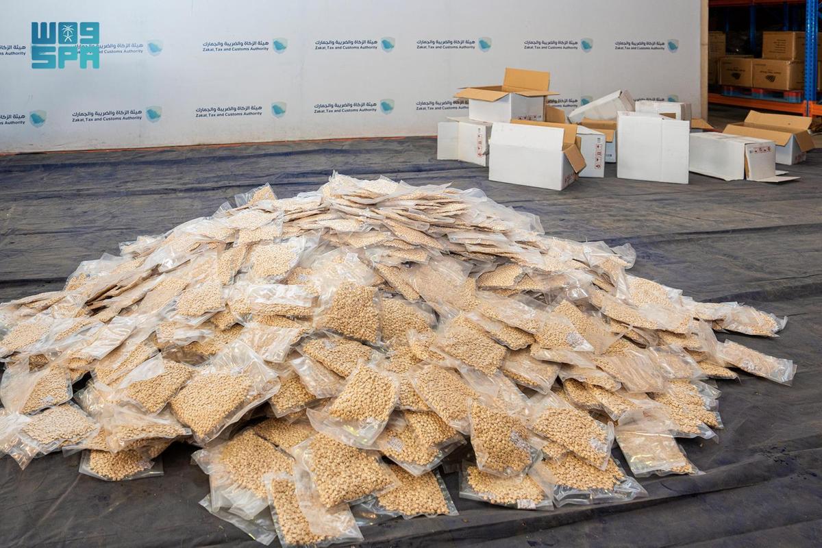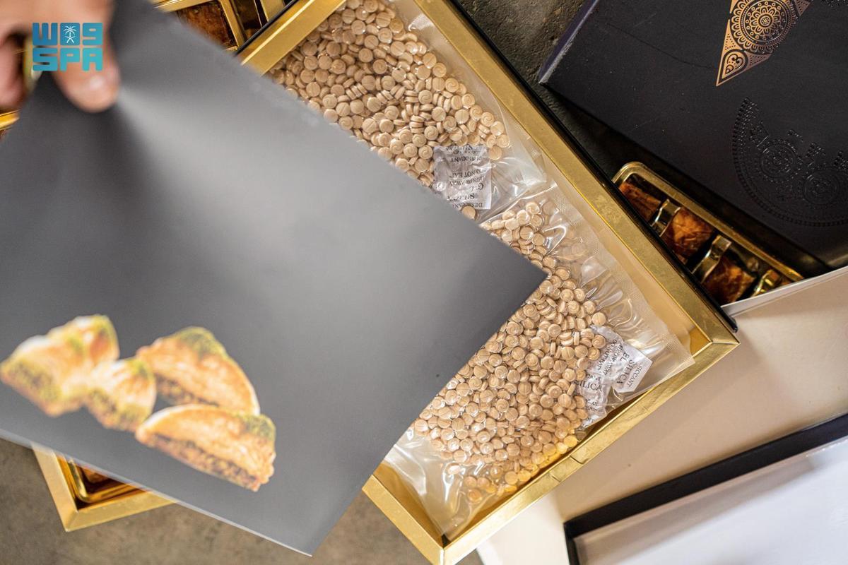 وأوضحت الهيئة أنه وردت إرسالية حلويات عبارة عن (بقلاوة) وعند خضوعها للإجراءات الجمركية، والكشف عليها عبر التقنيات الأمنية، عُثر على تلك الكمية من الحبوب مُخبأة أسفل طبقات (البقلاوة)، مضيفةً أنه بعد إتمام عملية الضبط، جرى التنسيق مع المديرية العامة لمكافحة المخدرات لضمان القبض على مستقبلي المضبوطات داخل المملكة، حيث تم القبض عليهما وهما شخصان.