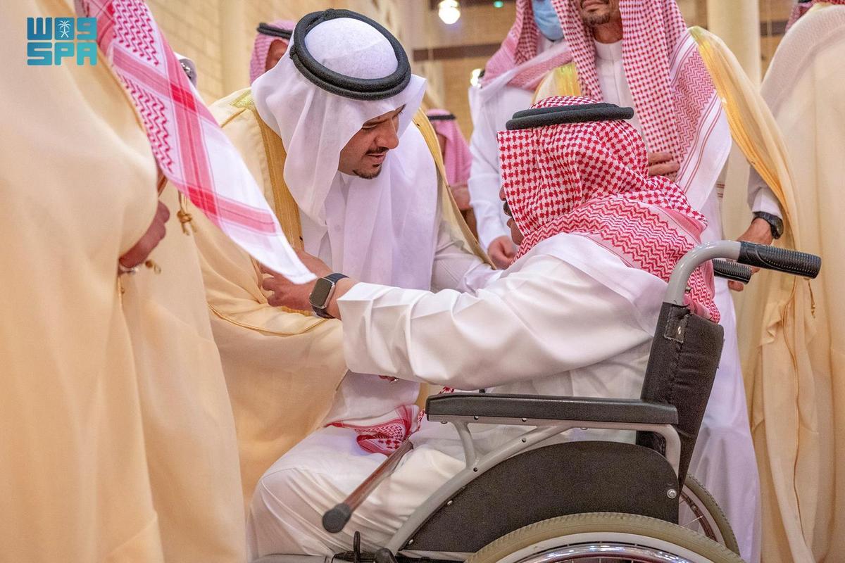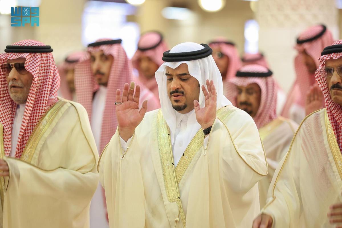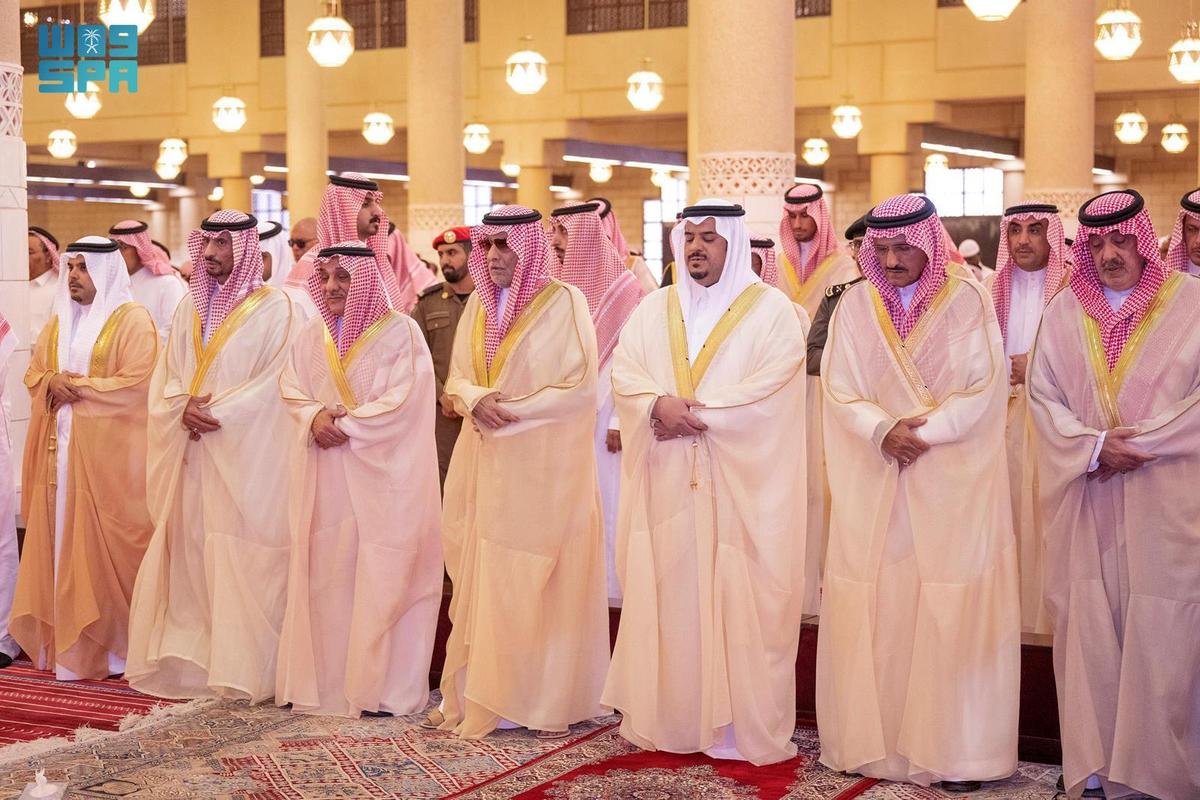 وأدى الصلاة مع سموه، صاحب السمو الأمير بدر بن فهد بن سعد الأول، وصاحب السمو الأمير خالد بن سعد بن فهد، وصاحب السمو الملكي الأمير خالد بن سلطان بن عبد العزيز، وصاحب السمو الملكي الأمير متعب بن عبد الله بن عبد العزيز، وصاحب السمو الملكي الأمير خالد بن بندر بن عبد العزيز مسشار خادم الحرمين الشريفين، وصاحب السمو الملكي الأمير فيصل بن خالد بن عبد العزيز مستشار خادم الحرمين الشريفين، وصاحب السمو الملكي الأمير سلطان بن سلمان بن عبد العزيز، المستشار الخاص لخادم الحرمين الشريفين، وصاحب السمو الملكي الفريق الركن تركي بن بندر بن عبد العزيز قائد القوات الجوية الملكية السعودية، وصاحب السمو الملكي الأمير فيصل بن سلطان بن عبد العزيز، وصاحب السمو الملكي الأمير فيصل بن سلمان بن عبد العزيز أمير منطقة المدينة المنورة، وصاحب السمو الملكي الأمير تركي بن محمد بن فهد بن عبد العزيز وزير الدولة عضو مجلس الوزراء، وصاحب السمو الأمير د. مشعل بن عبد الله بن عبد العزيز بن مساعد، وصاحب السمو الأمير فهد بن محمد بن سعود الكبير، وصاحب السمو الأمير سعود بن عبد الله بن ثنيان، وصاحب السمو الملكي الأمير سلطان بن فهد بن سلمان بن عبد العزيز، وصاحب السمو الملكي الأمير أحمد بن فهد بن سلمان بن عبد العزيز نائب أمير المنطقة الشرقية، وصاحب السمو الملكي الأمير فهد بن عبد الرحمن بن عبد العزيز، وصاحب السمو الملكي الأمير فيصل بن أحمد بن سلمان بن عبد العزيز، وصاحب السمو الأمير عبد الرحمن بن محمد بن عياف نائب وزير الدفاع، وسفير مملكة البحرين لدى المملكة الشيخ علي بن عبد الرحمن آل خليفة.