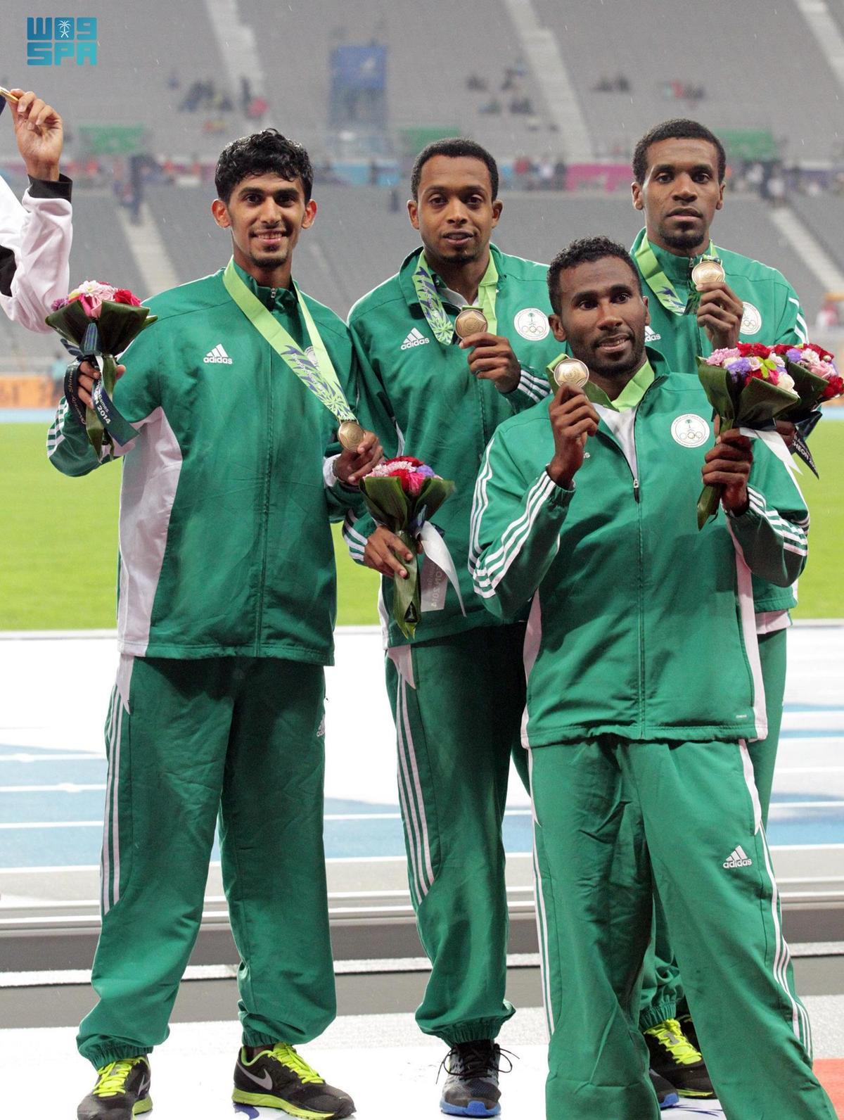 7 ذهبيات وفضية واحدة"، إذ افتتح العداء مخلد العتيبي، مشوار التألق، بنيله ميداليتين ذهبيتين، بفوزه بالمركز الأول في سباقي 10 آلاف و5 آلاف متر، فيما خطف العداء جمال الصفار، ذهبية سباق 100م.