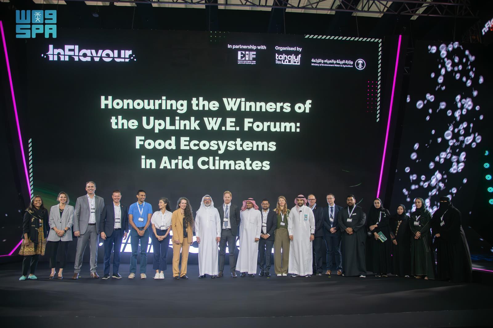 وشهد المسرح الرئيس خلال اليوم الافتتاحي من الفعالية الكشف عن الفائزين الـ 22 في "تحدي الابتكار للمساهمة في تعزيز الأمن الغذائي في المناطق القاحلة"، وهي مبادرة أطلقتها في وقتٍ سابق هذا العام وزارة الاقتصاد والتخطيط السعودية مع منصة UpLink التابعة للمنتدى الاقتصادي العالمي، للكشف عن حلول تحويلية مصممة لتعزيز الأمن الغذائي في البلدان المتضررة من انخفاض هطول الأمطار والجفاف والتصحر.