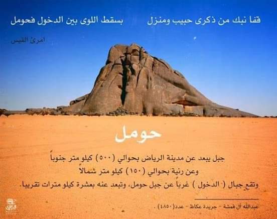 وهناك جِبال تماثله ككُتل صخرية، منها (جبل حومل) شمال غرب وادي الدواسر.
