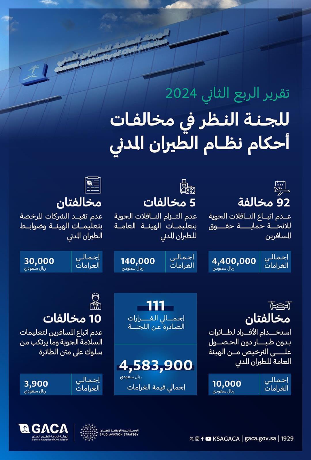 الطيران المدني: غرامات 4.5 ملايين ريال بالربع الثاني 2024
