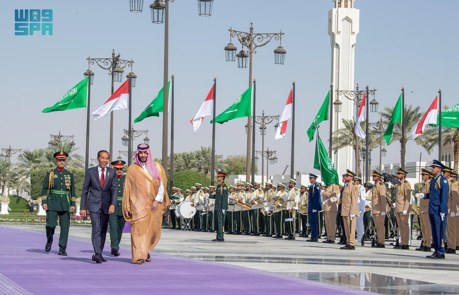 واستقبل صاحب السمو الملكي الأمير محمد بن سلمان بن عبد العزيز آل سعود ولي العهد رئيس مجلس الوزراء، فخامة رئيس جمهورية إندونيسيا السيد برابوو سوبيانتو بقصر السلام بجدة، ونقل سموه إلى فخامته تحيات خادم الحرمين الشريفين الملك سلمان بن عبد العزيز آل سعود، وتمنياته لفخامته موفور الصحة والعافية، ولجمهورية إندونيسيا وشعبها الشقيق المزيد من التقدم والرقي، وطلب فخامته من سمو ولي العهد نقل تحياته وأصدق تمنياته إلى خادم الحرمين الشريفين الملك سلمان بن عبد العزيز آل سعود، دوام الصحة والعافية، وللشعب السعودي الشقيق النماء والرخاء. وعقدا جلسة مباحثات رسمية، استعرضا خلالها العلاقات التاريخية بين البلدين الشقيقين وسبل تطويرها في جميع المجالات.