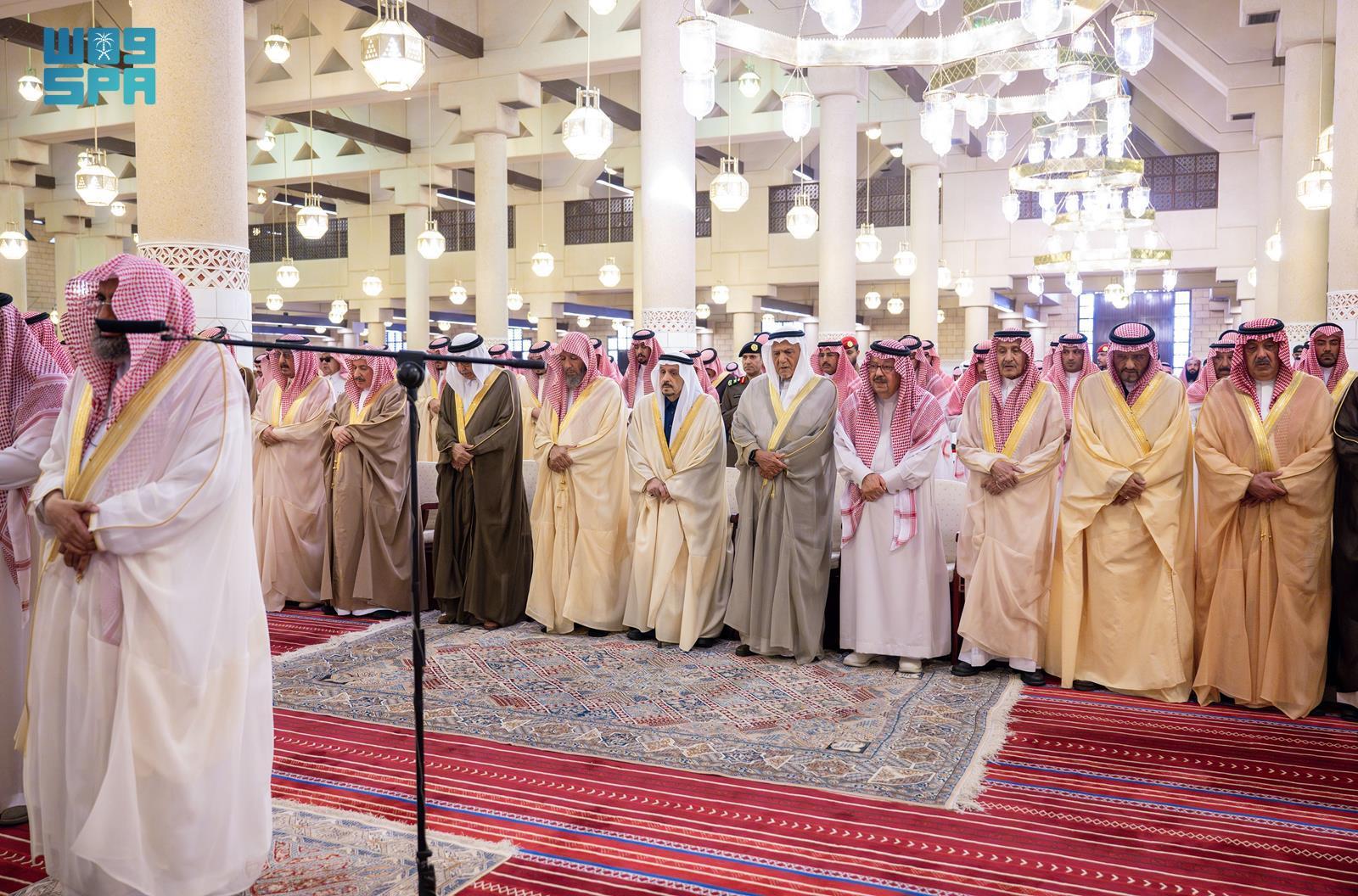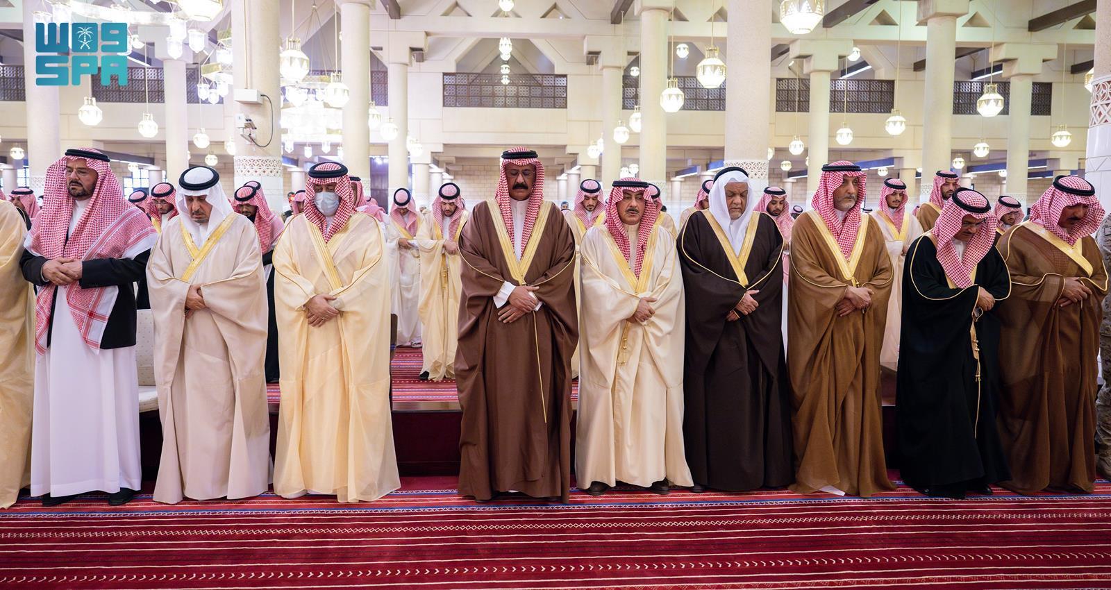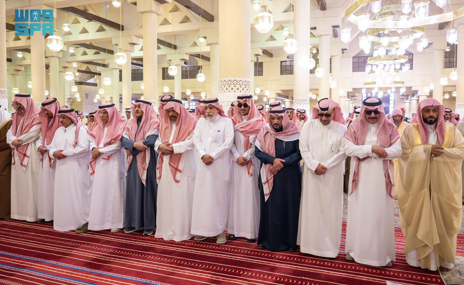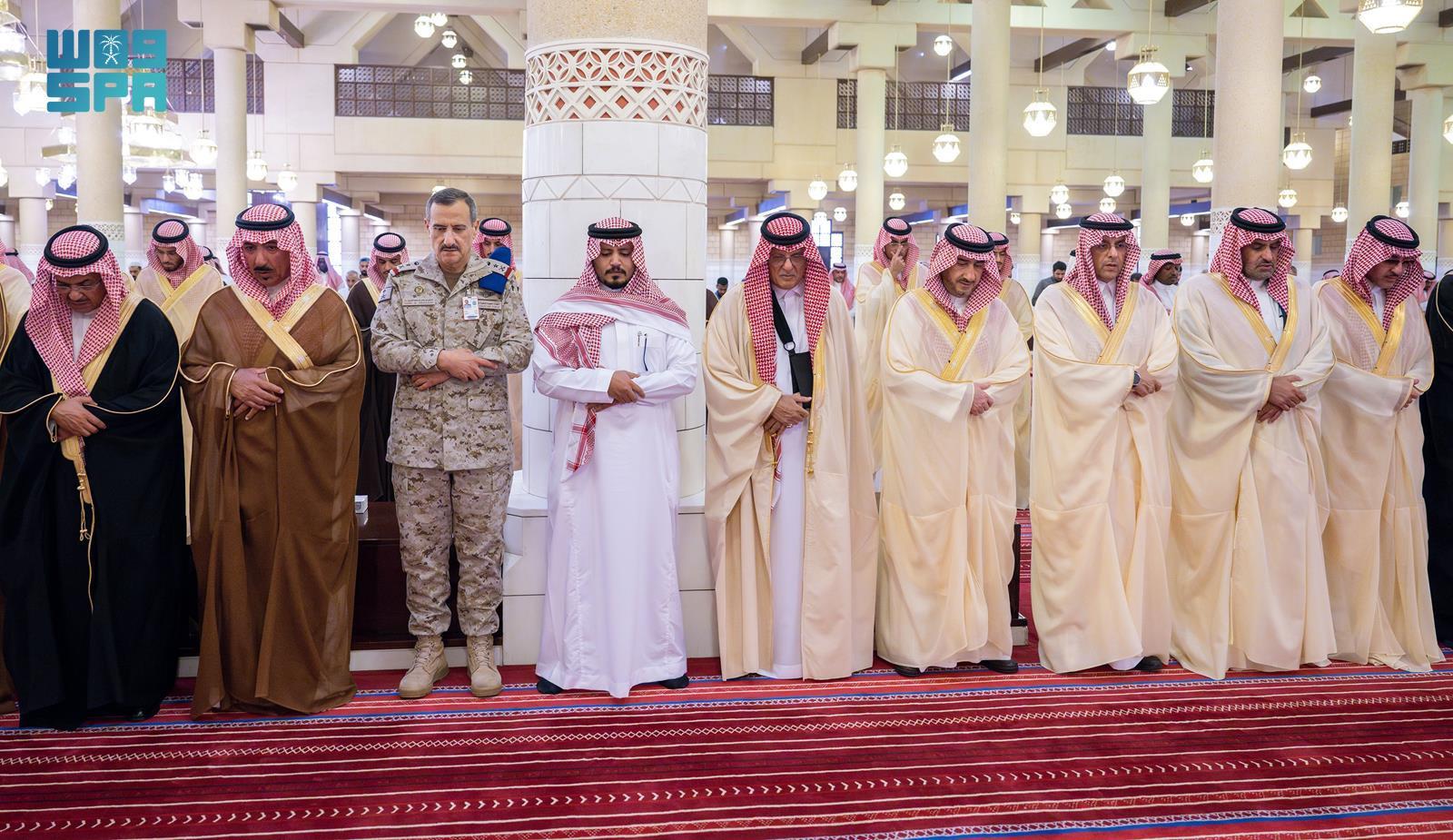وأدى الصلاة مع سموه، صاحب السمو الملكي الأمير تركي بن فيصل بن عبد العزيز، وصاحب السمو الملكي الأمير سعود بن سعد بن عبد العزيز، وصاحب السمو الملكي الأمير منصور بن سعود بن عبد العزيز، وصاحب السمو الأمير تركي بن عبد الله بن عبد الرحمن، وصاحب السمو الأمير خالد بن مساعد بن عبد الرحمن، وصاحب السمو الأمير تركي بن محمد بن عبد العزيز بن تركي، وصاحب السمو الملكي الأمير محمد بن مشاري بن عبد العزيز، وصاحب السمو الملكي الأمير خالد بن بندر بن عبد العزيز مستشار خادم الحرمين الشريفين، وصاحب السمو الملكي الأمير متعب بن عبد الله بن عبد العزيز، وصاحب السمو الأمير د. سعود بن سلمان بن محمد آل سعود، وصاحب السمو الملكي الامير مشاري بن سعود بن عبد العزيز، وصاحب السمو فهد بن محمد بن سعود الكبير، وصاحب السمو الملكي الأمير طلال بن بدر بن سعود، وصاحب السمو الأمير أحمد بن عبد الله بن عبد الرحمن، وصاحب السمو الأمير محمد بن سعد بن خالد، وصاحب السمو الملكي الأمير الوليد بن بدر بن سعود، وصاحب السمو الأمير خالد بن سعود بن خالد بن محمد بن عبد الرحمن، وصاحب السمو الأمير محمد بن سعود بن خالد بن محمد بن عبد الرحمن، وصاحب السمو الملكي الأمير د. فيصل بن محمد بن سعود بن عبد العزيز، وصاحب السمو الملكي الأمير د. فيصل بن مشعل بن سعود أمير منطقة القصيم، وصاحب السمو الملكي الأمير فيصل بن تركي بن عبد العزيز المستشار في الديوان الملكي، وصاحب السمو الملكي الأمير تركي بن بندر بن عبد العزيز قائد القوات الجوية الملكية السعودية ، وصاحب السمو الملكي الأمير محمد بن بندر بن عبد العزيز، وصاحب السمو الملكي الأمير محمد بن خالد بن عبد الله بن فيصل بن عبد العزيز، وصاحب السمو الأمير نواف بن محمد بن عبد الله، وصاحب السمو الملكي الأمير فيصل بن تركي بن ناصر، وصاحب السمو الأمير بندر بن سعد بن خالد، وصاحب السمو الأمير فهد بن خالد بن عبد الله بن محمد، وصاحب السمو الملكي الأمير نواف بن فيصل بن فهد، وصاحب السمو الملكي الأمير محمد بن فيصل بن بندر، وصاحب السمو الأمير سعد بن عبد الله بن عبد العزيز بن مساعد بن جلوي، وصاحب السمو الملكي الأمير سعود بن طلال بن بدر بن سعود محافظ الاحساء، وصاحب السمو الملكي فهد بن خالد بن سلطان، وصاحب السمو الملكي الأمير عبد الله بن خالد بن سلطان، وصاحب السمو الملكي الأمير متعب بن مشعل بن بدر بن سعود بن عبد العزيز نائب أمير منطقة الجوف، وصاحب السمو الملكي الأمير فيصل بن محمد بن فيصل بن بندر.