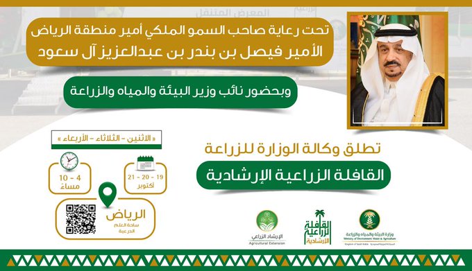 وأكد أن القافلة الإرشادية تشمل عدة أركان، منها عيادات النحل المتنقلة لفحص عينات النحل، بالإضافة لورش عمل متخصصة لتقديم أفضل الخدمات للنحالين والمهتمين بتربية النحل في المملكة، كما تشمل أركانها المختبر الزراعي المتنقل لتقديم خدمات تحليل التربة والمياه للمزارعين، وتشخيص الأمراض الفطرية النباتية للمزارعين، وركن الهدايا التذكارية، والشاشات المتحركة لتقديم عروض الأفلام الزراعية والإرشادية للزوار من المزارعين والنحالين ومربي الماشية والصيادين، بالإضافة إلى الديوانية التي تتكون من مجلس متنقل لاستقبال المسؤولين والمزارعين والنحالين ومربي الثروة الحيوانية والصيادين لتقديم برامج إرشادية زراعية، كما يرافق القافلة إستديو متنقل يُعدّ الأول من نوعه على مستوى المملكة مجهز بأحدث التجهيزات، بالإضافة لأركان ومساحات مخصصة للمشاركين لعرض منتجات المزارعين والنحالين وغيرهم، داعياً جميع المهتمين بالقطاع الزراعي إلى زيارة القافلة للاستفادة من هذه البرامج المصاحبة، والتي ستطور الجانب العلمي والعملي لديهم بكل تأكيد.