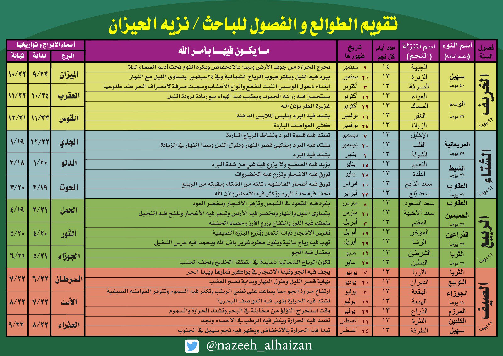 نـزيـه الـحـيـزان (تويتر) : الليلة أخر ليالي الشبط، وغداً السبت 10 فبراير، أول أيام، (السم، والدم، والدسم)