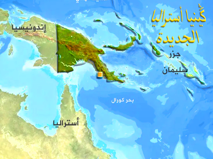 بابوا غينيا الجديدة قارة أوقيانوسيا. وتعد ثاني أكبر جزيرة غير قارية في العالم. تتقسم الجزيرة إلى قسمين شرقي وغربي. والمناخ حار، عالي الرطوبة، تتكون من ستة أقاليم وبجبال شاهقة الارتفاع ةجزرها جبلية بركانية.