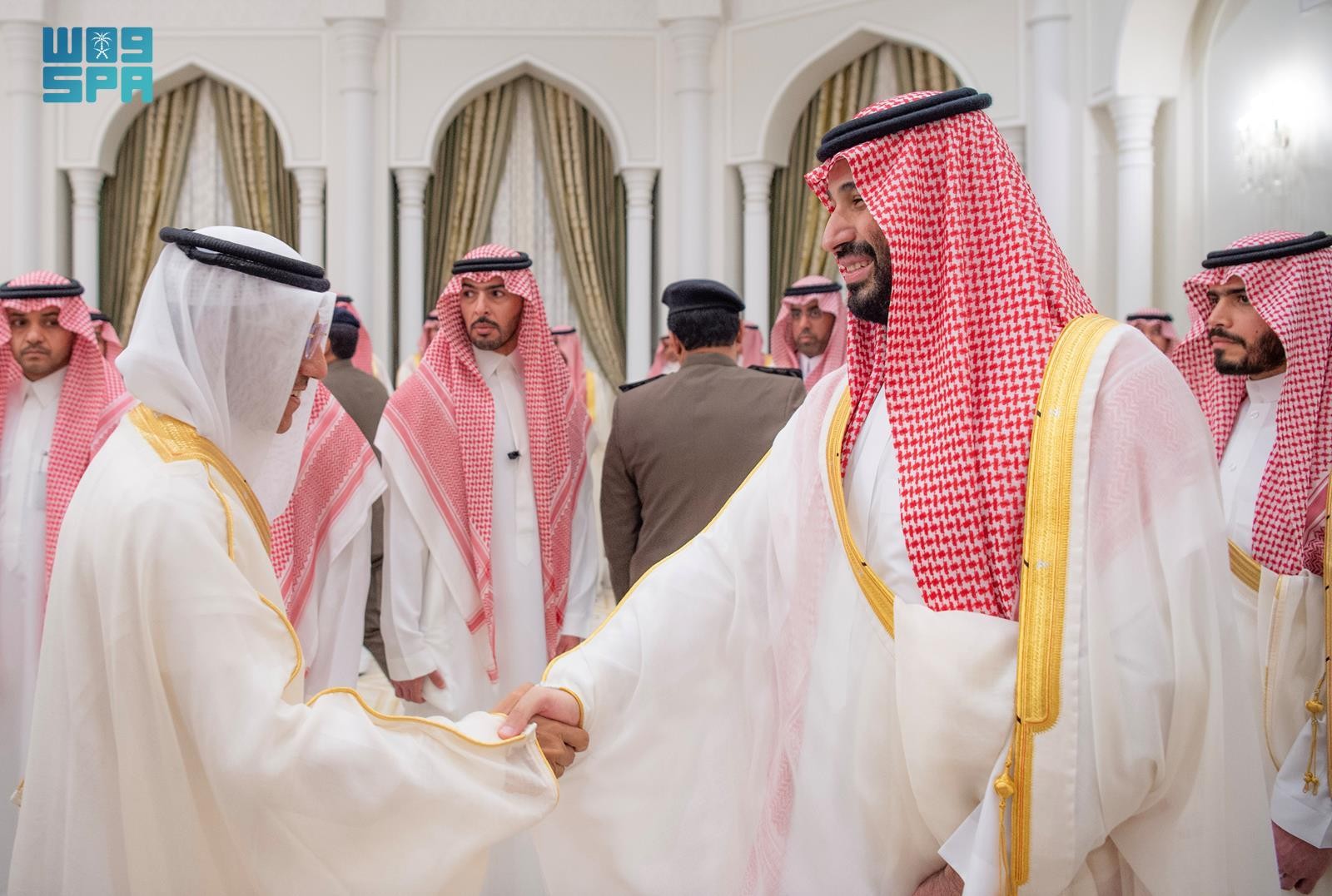 وقد تبادل سمو ولي العهد التهنئة مع الجميع بمناسبة حلول شهر رمضان المبارك، سائلًا المولى عز وجل أن يتقبل من الجميع الصيام والقيام وصالح الأعمال.