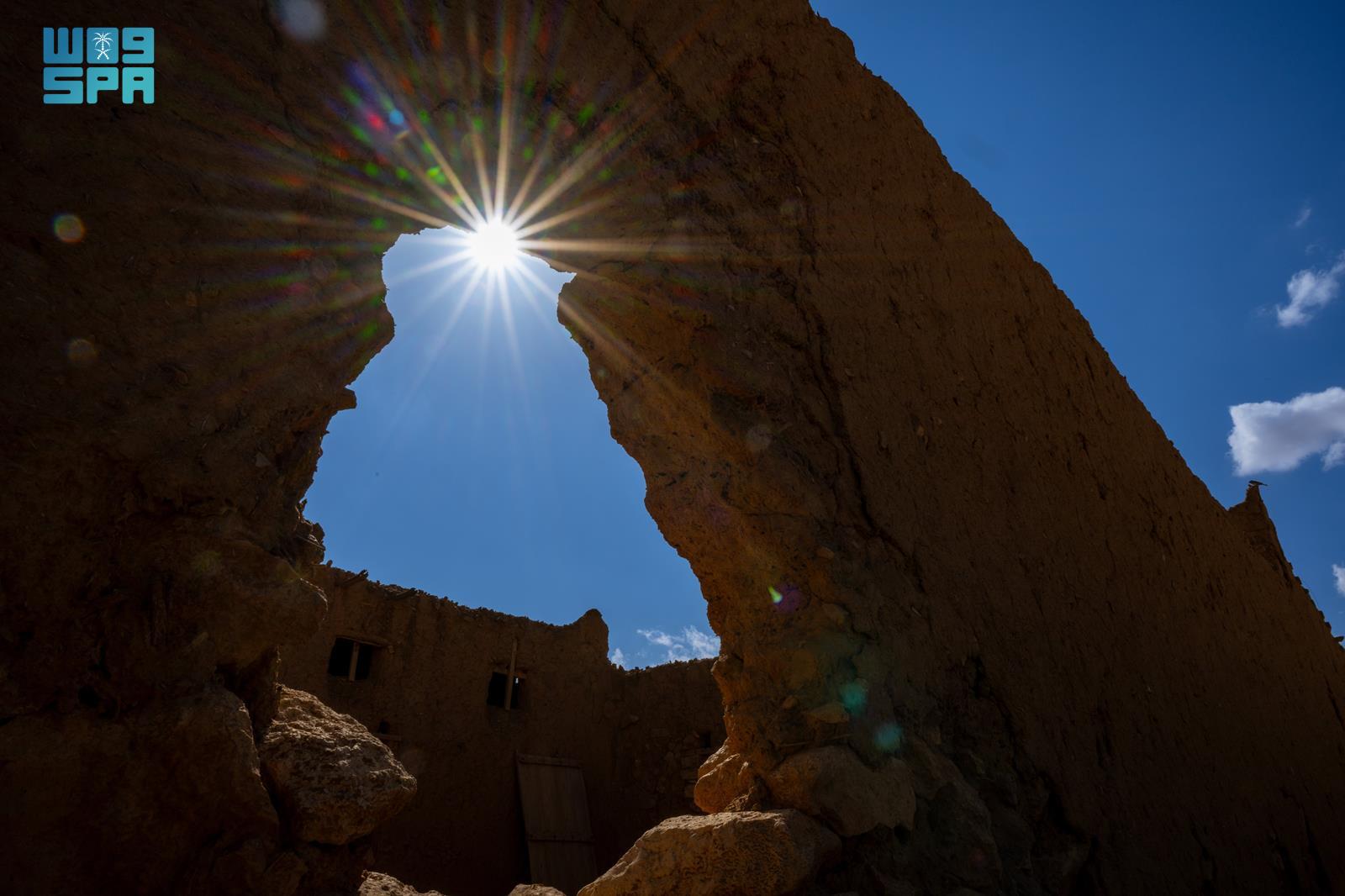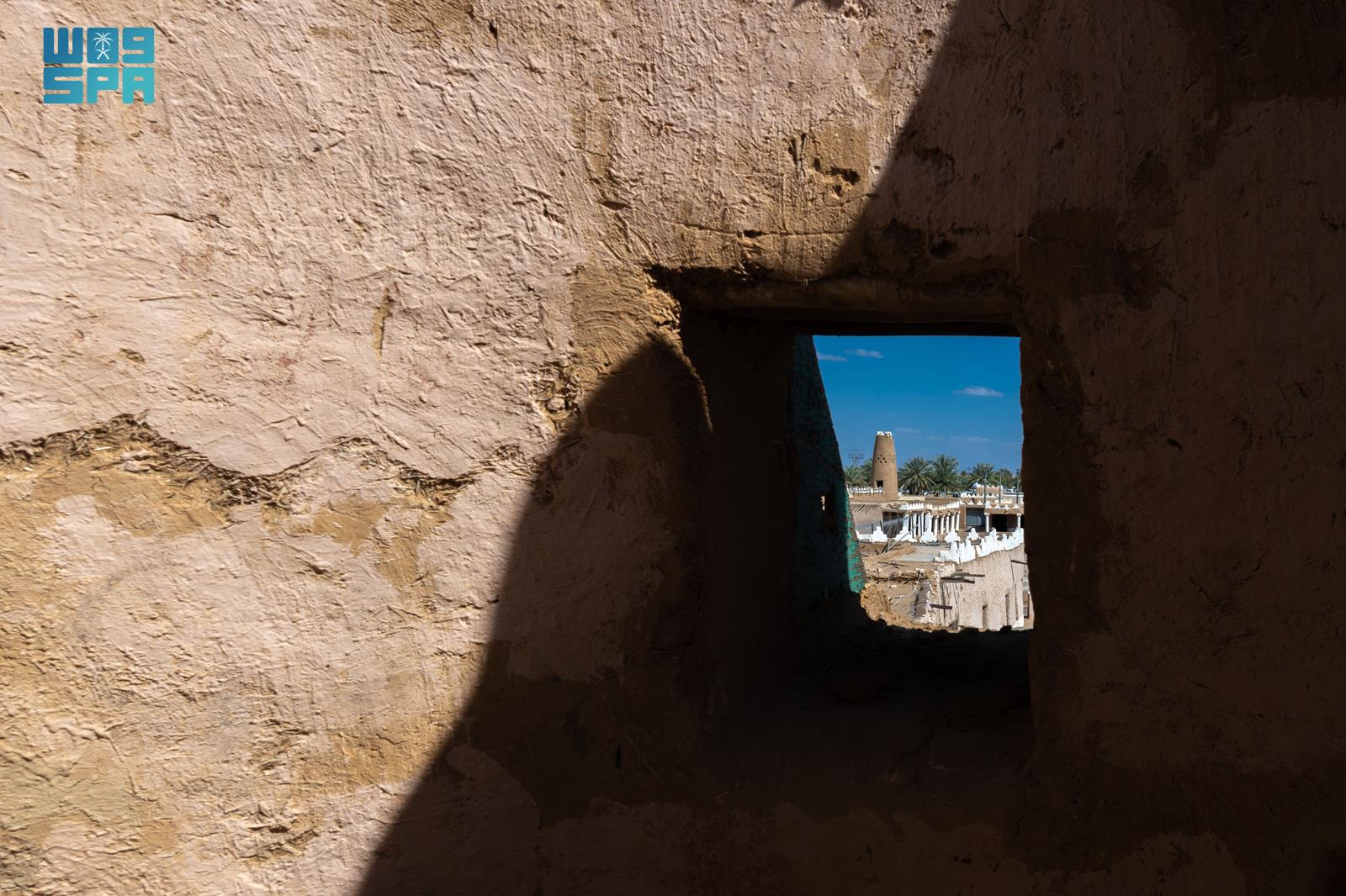وتُظهر فتحات الجدران الطينية انعكاسات الضوء في مشهدٍ بصري يوثّق تعاقب الزمن على هذه المباني، ويُبرز ما شهدته من تحولات، مع احتفاظها بقيمتها التاريخية والجمالية، حيث تتناغم عناصر الضوء والظل لتمنح المكان بُعدًا بصريًا ثريًا.
