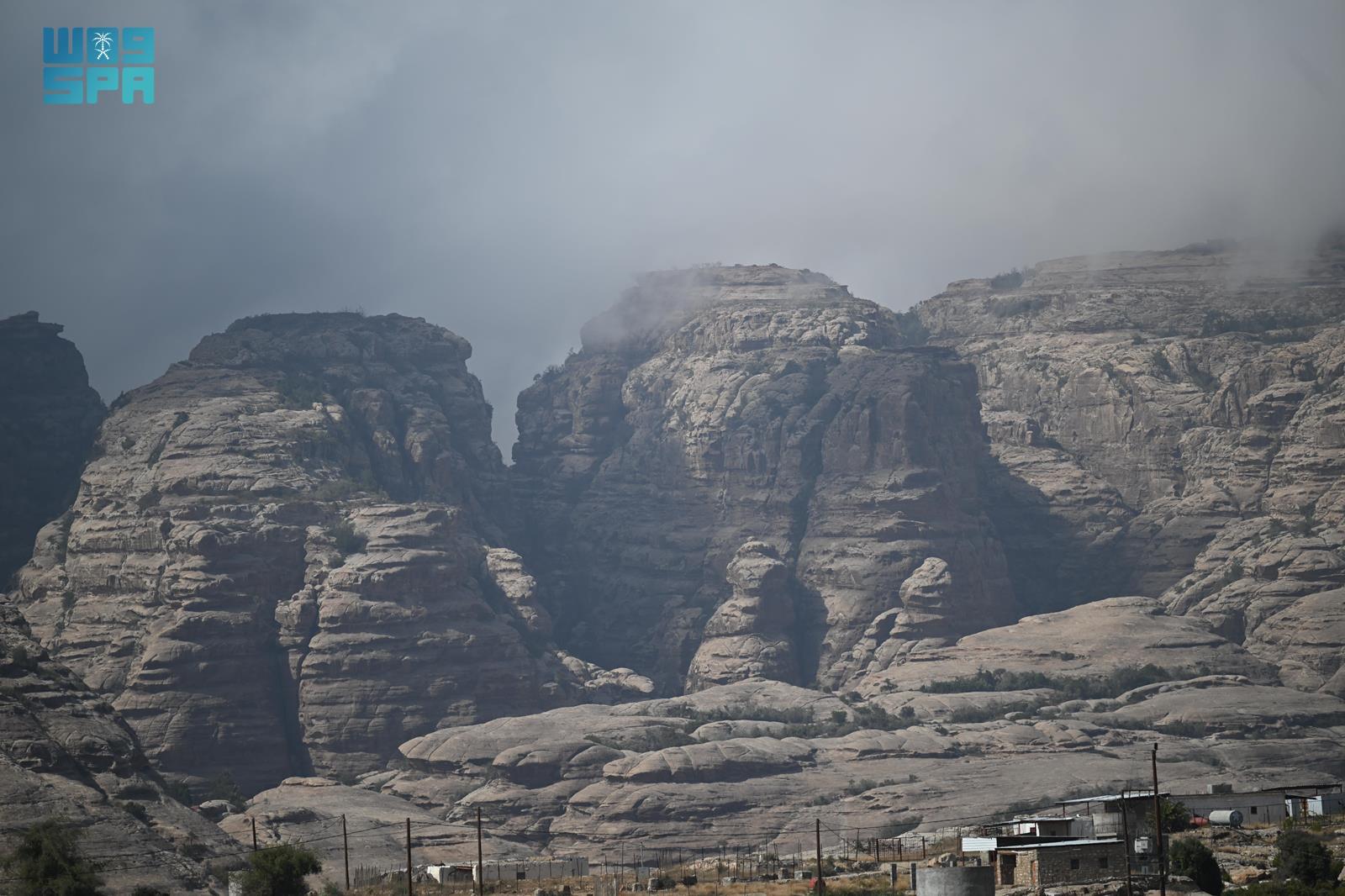 وفي القطاع الجبليّ تبرزُ جازان بجمال تضاريسها وتنوّع بيئتها، حيثُ تمتدُّ المدرّجات الزراعية على سُفوح الجبال، وتتعانقُ القرى القديمةُ مع الضباب في مشهدٍ طبيعيٍّ أخّاذ.