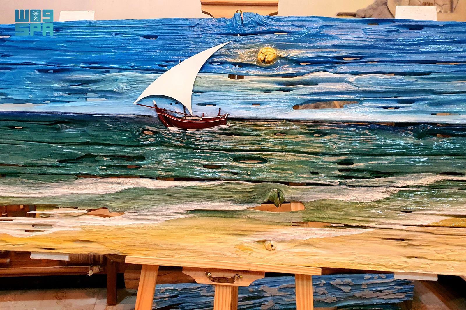 وفي المشهد الفني ذاته، وثق الفنانون التشكيليون الإرث البحري لمدينة الجبيل عبر أعمال فنية وحرفية، من خلال نماذج ومجسمات خشبية للسفن التقليدية مثل (السنبوك، والجلبوت، والحوري) وغيرها من القوارب التي تجسد ذاكرة البحر ومهنة صيد اللؤلؤ، لما تحمله من رمزية الفخر بالماضي وارتباطٍ بمهنة الآباء والأجداد.