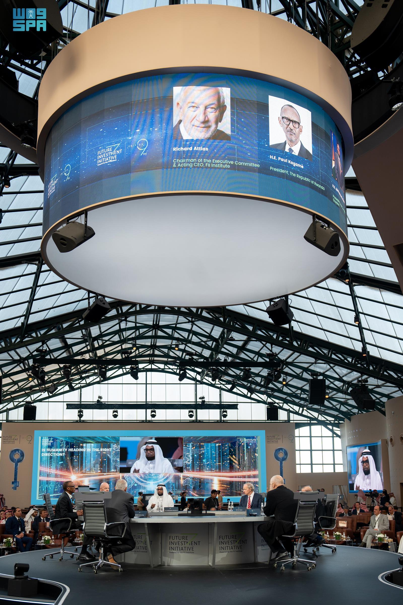 جاء ذلك في جلسة حوارية بعنوان "هل تسير الإنسانية في الاتجاه الصحيح"، ضمن جلسات النسخة التاسعة من مؤتمر مبادرة مستقبل الاستثمار، وشارك فيها كل من دولة رئيس وزراء جمهورية باكستان الإسلامية شهباز شريف، ورئيس جمهورية رواندا بول كاغامي، ورئيس جمهورية غويانا التعاونية محمد عرفان علي، ورئيس وزراء جمهورية ألبانيا إدي راما، ورئيس الاتحاد الدولي لكرة القدم "فيفا" جياني إنفانتينو.