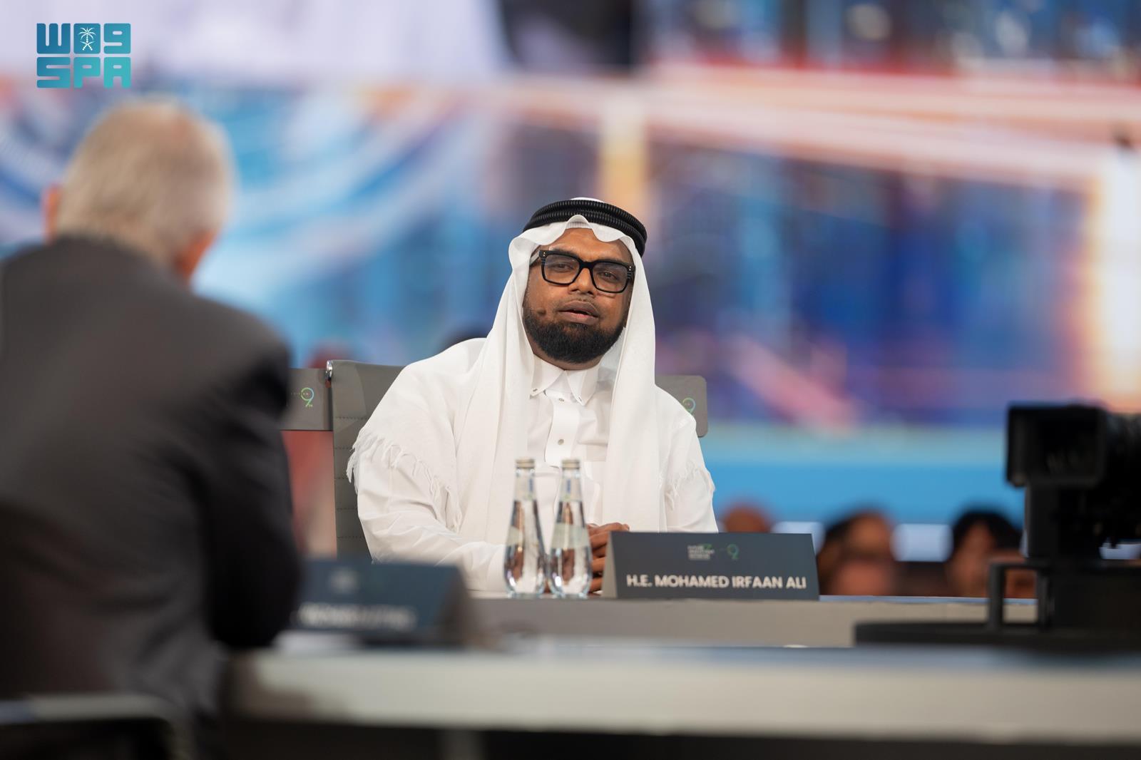 وبيّن أن الشباب يمثلون نحو (60%) من سكان باكستان؛ مما يجعلهم ركيزة أساسية في خطط التدريب والتأهيل والتوظيف لتعزيز الإنتاجية والنمو الاقتصادي، لافتًا النظر إلى أهمية التعاون الدولي لدعم الدول النامية في مجالات التقنية والاستثمار الأخضر، مستعرضًا التحديات التي تواجه بلاده نتيجة التغير المناخي، وبيّن أن باكستان من أكثر عشر دول تأثرًا بالكوارث الطبيعية رغم انخفاض انبعاثاتها الكربونية إلى أقل من (0.1%)، إذ تعرضت لفيضانات مدمّرة عام 2022 تسببت بخسائر تجاوزت (130) مليار دولار، داعيًا إلى تعزيز التعاون الدولي لمواجهة الآثار المناخية ودعم الدول المتضررة من الكوارث الطبيعية عبر شراكات عادلة في التمويل والتقنية.