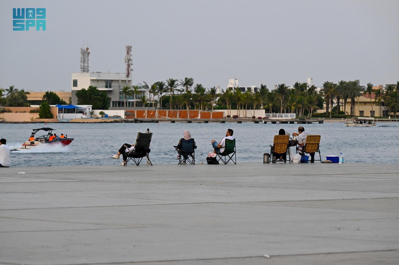وشهدت شواطئ المحافظة، ومنها شواطئ واجهة روشن البحرية، وأبحر الجنوبية، وشاطئ السيف، إقبالًا لافتًا من المتنزهين، الذين توافدوا برفقة أسرهم وأصدقائهم، فيما ازدانت الواجهات البحرية بالحركة والتنزه ومختلف الأنشطة الترفيهية.