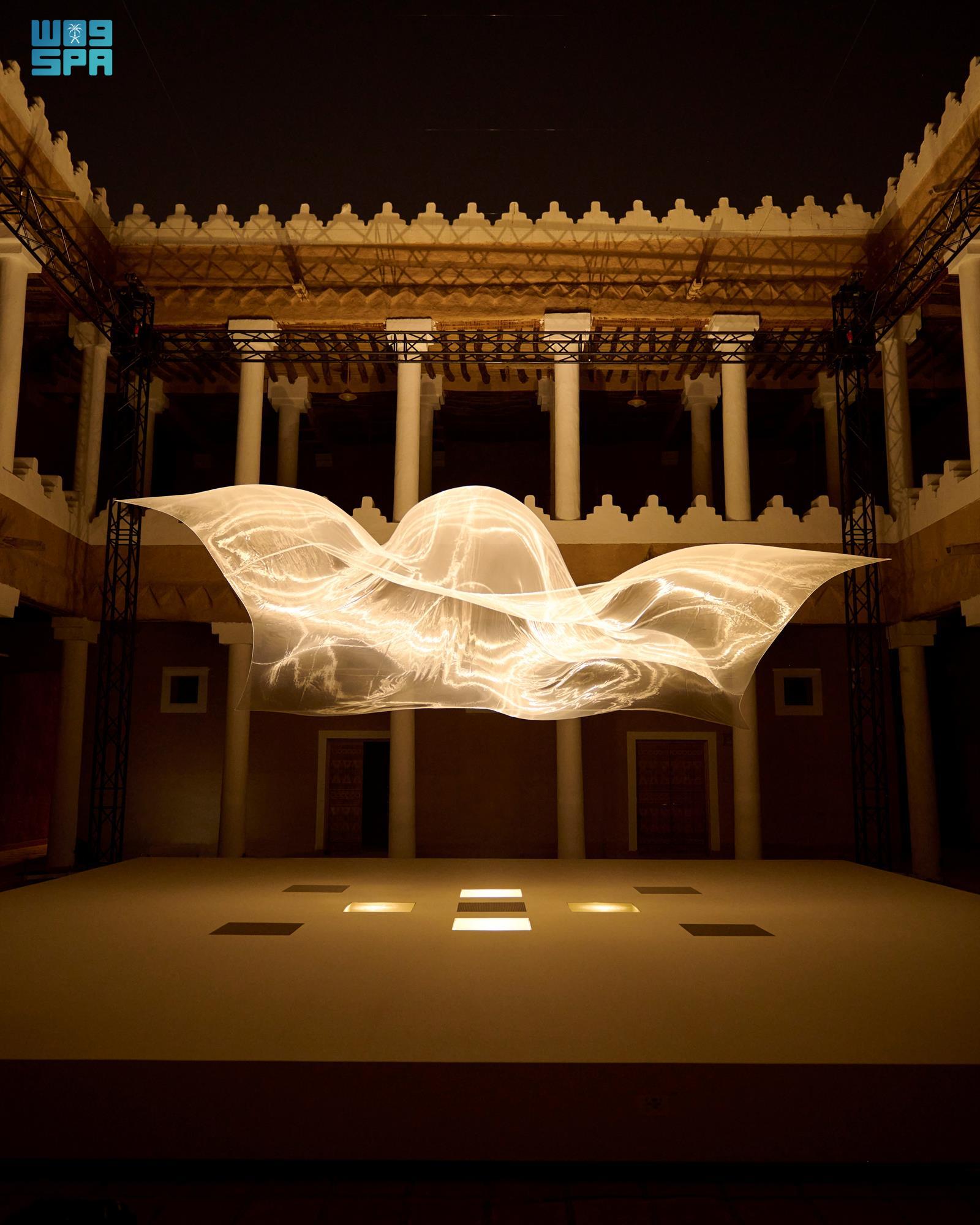 وفي جانب آخر في مركز الملك عبد العزيز التاريخي، يقدم الفريق الفني يونايتد فيجوال أرتيستس العمل الفني الذي يتألف من 1,500 طائرة مسيّرة، مستوحى من الفكرة القديمة للقوى الخفية التي تشكّل عالمنا، حيث يستلهم العرض الجوي، الذي يستمر لــ 7 دقائق، مفهوم “الموسيقى الكونية” للفيلسوف فيثاغورس، الذي يقترح أن الكواكب تخلق شكلًا من الصوت لا يمكن للأذن البشرية سماعه.