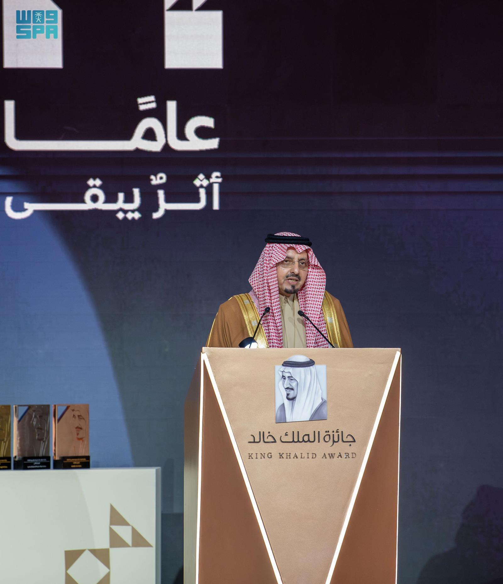 يذكر أن الحفل شهد احتفالية خاصة بمناسبة مرور 16 عامًا على انطلاق جائزة الملك خالد، التي أصبحت إحدى أبرز الجوائز الوطنية في مجالات التنمية والاستدامة وتمكين القطاع غير الربحي، كما ضم الحفل معرضًا مصاحبًا استعرض مقتنيات تاريخية للملك خالد -رحمه الله-، وقدّم تجربة تفاعلية تعكس مسيرة الملك خالد وقيمه، ودوره في تعزيز التنمية والنهضة الوطنية.