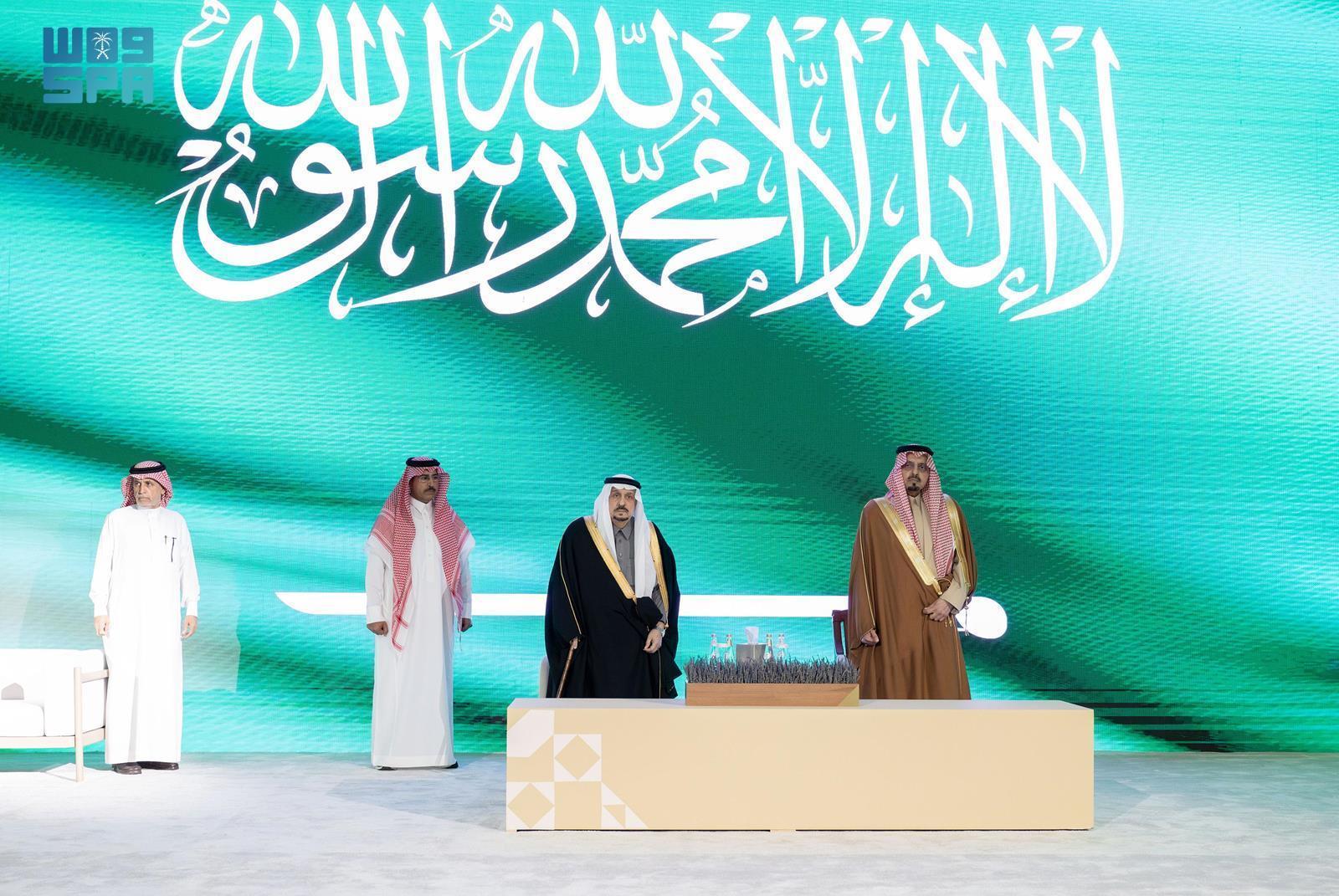 ثم عزف السلام الملكي،، وبعد أن أخذ خادم الحرمين الشريفين مكانه في المنصة الرئيسة بدئ الحفل المعد بهذه المناسبة بتلاوة آيات من القرآن الكريم.