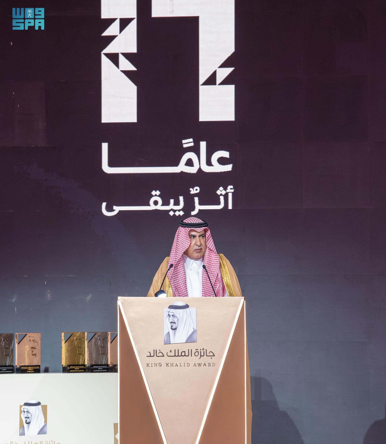وقال سمو الأمير فيصل بن خالد بن عبد العزيز في كلمة له بهذه المناسبة: "نلتقي اليوم في حفل تكريم الفائزين بجائزة الملك خالد للعام 2025م، هذه الجائزة التي تحمل اسم رجل عظيم ترك بصمة لا تنسى في تاريخ هذا الوطن الملك خالد بن عبد العزيز -طيب الله ثراه- رمز العدالة والعطاء، وإرث نستمد منه القيم التي ترتكز عليها، والطريق الذي نسير فيه نحو مجتمع أقوى وأكثر ازدهارًا".