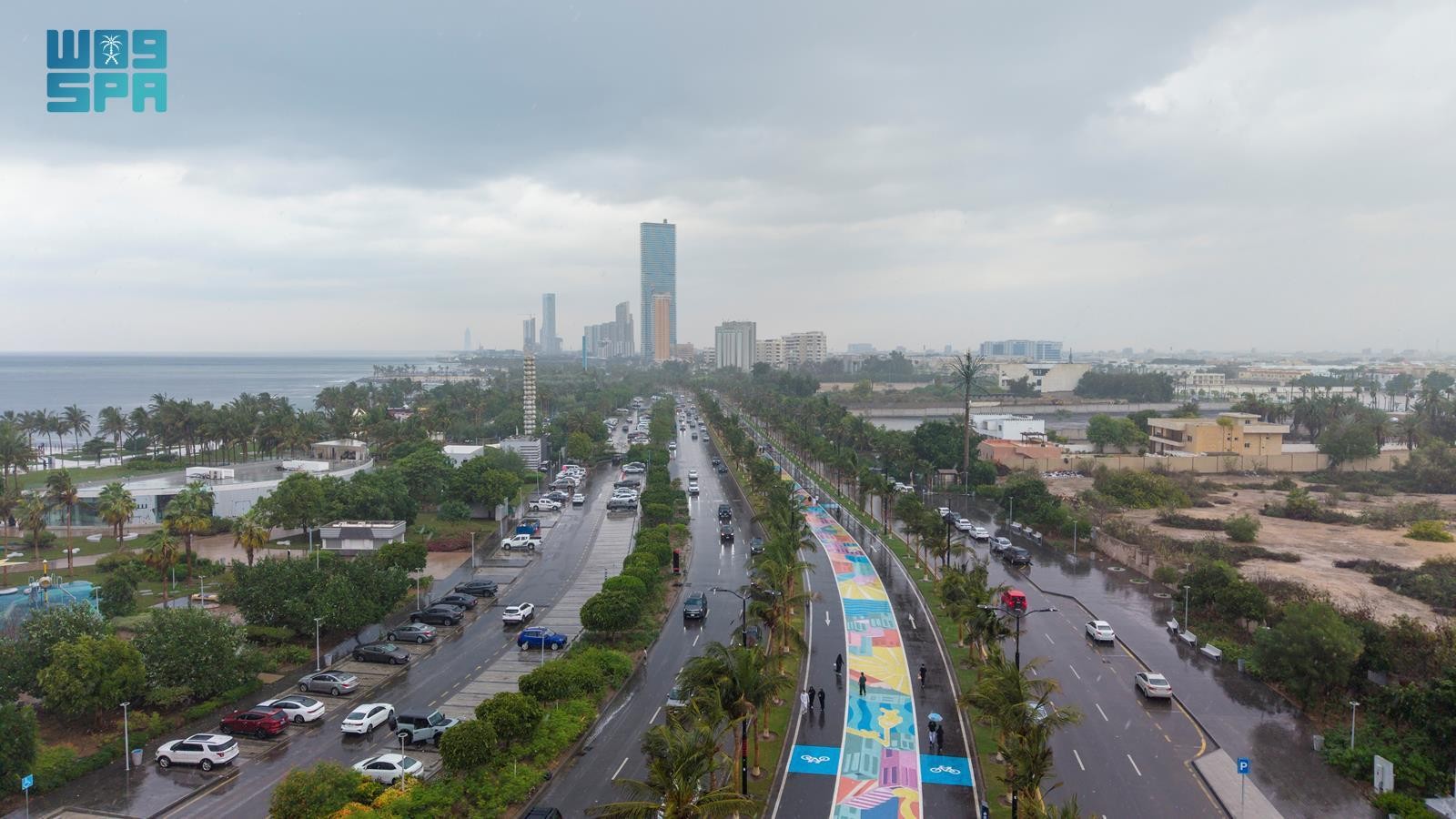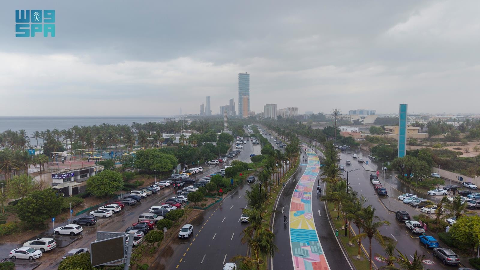 وتجلّت مظاهر الجمال في الطرقات والأحياء مع تفاعل السكان مع الأجواء الممطرة، التي جاءت متوسطة، مما أسهم في إبراز المشهد الجمالي.