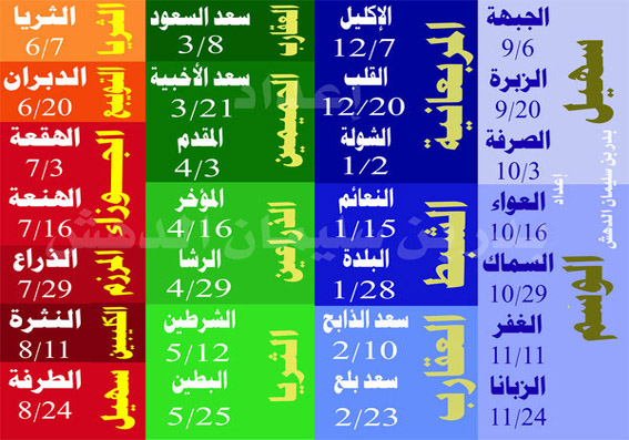 وفي عصر التأسيس، بحسب ما ورد في الدليل المعرفي للمحتوى التاريخي ليوم التأسيس، الذي أصدرته دارة الملك عبد العزيز كان السكان يتأملون السماء بحثًا عن علامات متكررة ومنتظمة تساعدهم على ترقب هطول الأمطار، مستدلين بالنجوم، التي عُدّت بمثابة مصابيح يهتدون بها في ظلام الصحراء ليلًا، ووسيلة يعتمدون عليها في تحديد المواقيت.