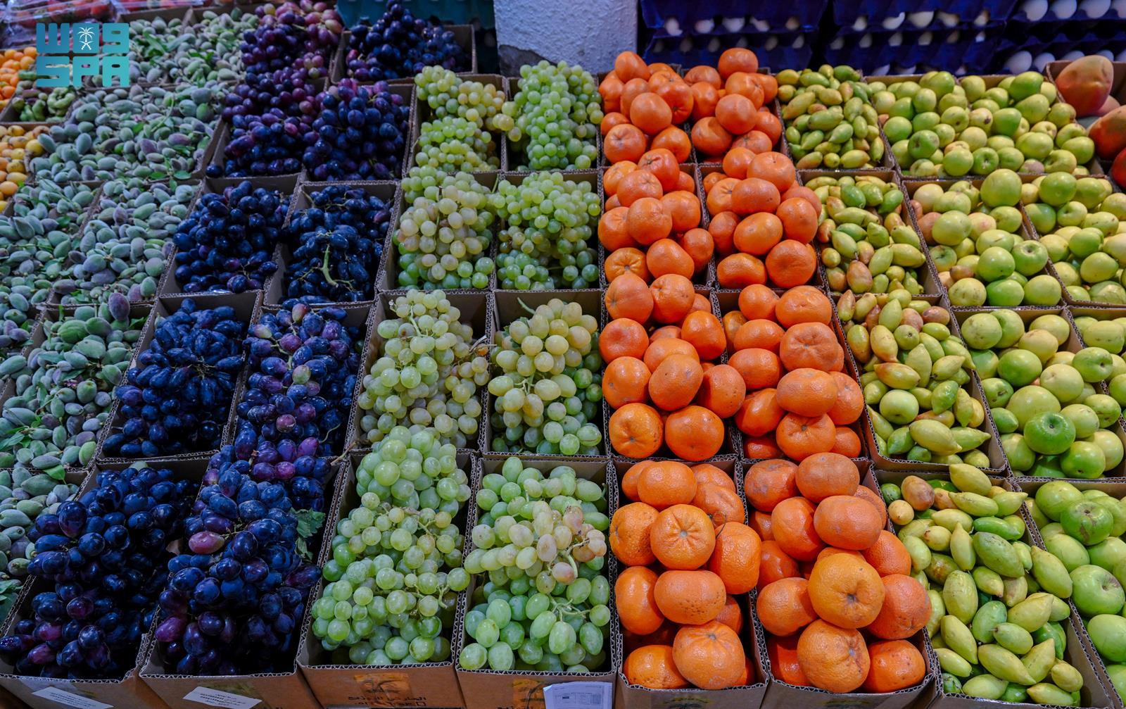 وتبرز في أسواق المنطقة أنواع متعددة من الفواكه الموسمية والمحاصيل الزراعية، من أبرزها العنب والرمان والتين واللوز، حتى الحمضيات، مثل: اليوسفي والبرتقال والليمون بانواعها، إلى جانب أصناف متنوعة من الخضروات الطازجة التي تدخل في إعداد السلطات والأطباق الرمضانية المختلفة.