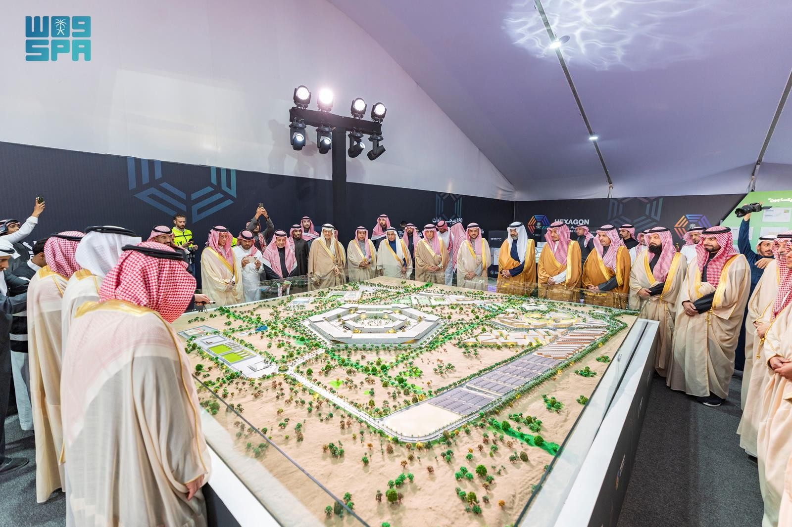 عقب ذلك، تفضّل أصحاب السمو والمعالي بالمشاركة في وضع حجر الأساس للمركز إيذانًا ببدء أعمال تنفيذه رسميًا، ثم التقطت الصورة التذكارية بهذه المناسبة.